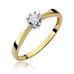 Klasyczny złoty pierścionek zaręczynowy z niepowtarzalnym brylantem. Efektowny kamień podkreśli piękno i powabność każdej kobiecej dłoni. Idealny jako prezent dla bliskiej osoby, który zachwyci i zauroczy ukochaną. Wykonany z dbałością o każdy detal ze złota najwyższej jakości.