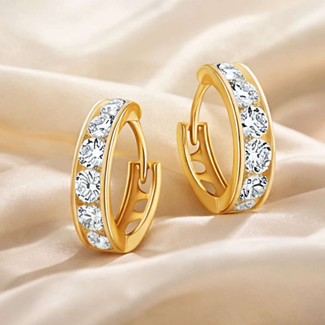 Złote Kolczyki Koła z Białymi Cyrkoniami – Elegancki blask na każdą okazję