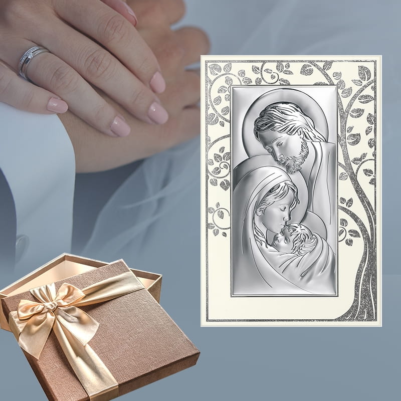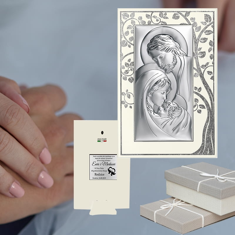 Obraz srebrny Święta Rodzina Prezent Ślub Komunia