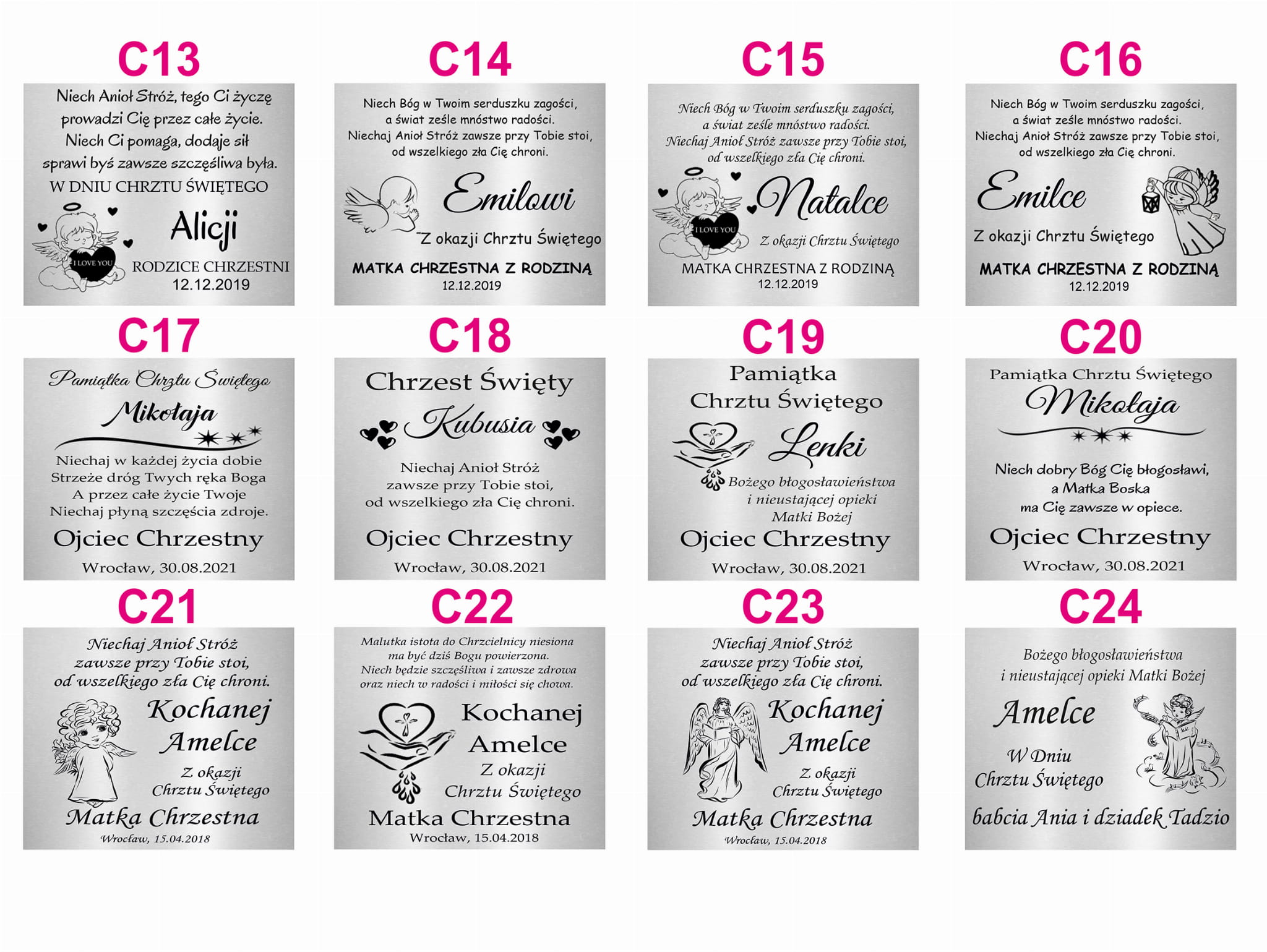 Wybierz właściwy model i wielkość oraz zastanów się jaki tekst graweru chcesz zamówić. Poniżej przedstawiamy kilka wzorów na różne okazje. Jeżeli któryś Ci odpowiada to zanotuj nr wzoru.