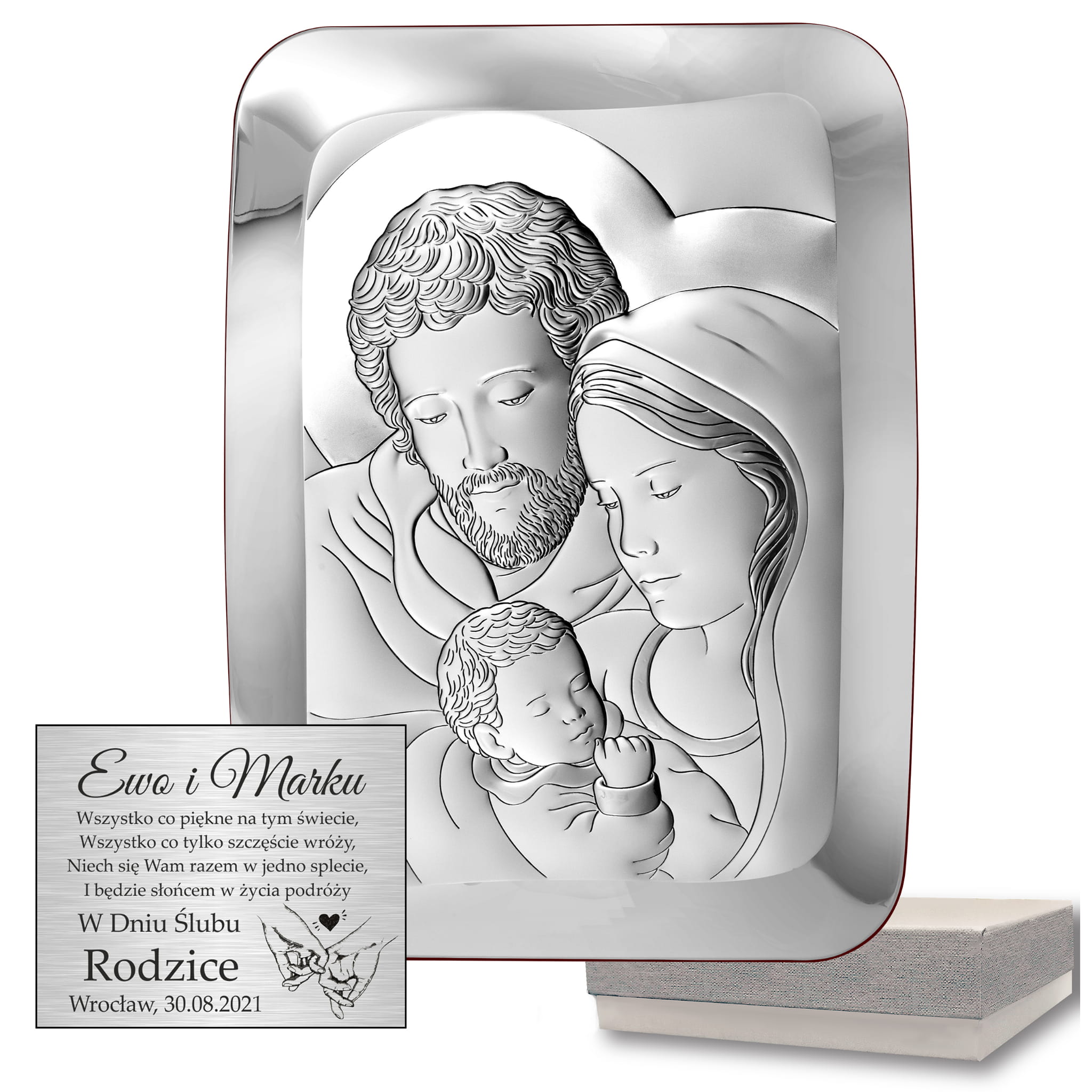 Srebrny obrazek z wizerunkiem Świętej Rodziny Pudełko i Grawer Gratis