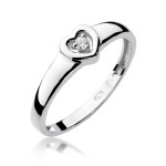 Pierścionek zaręczynowy z białego złota serce z diamentem