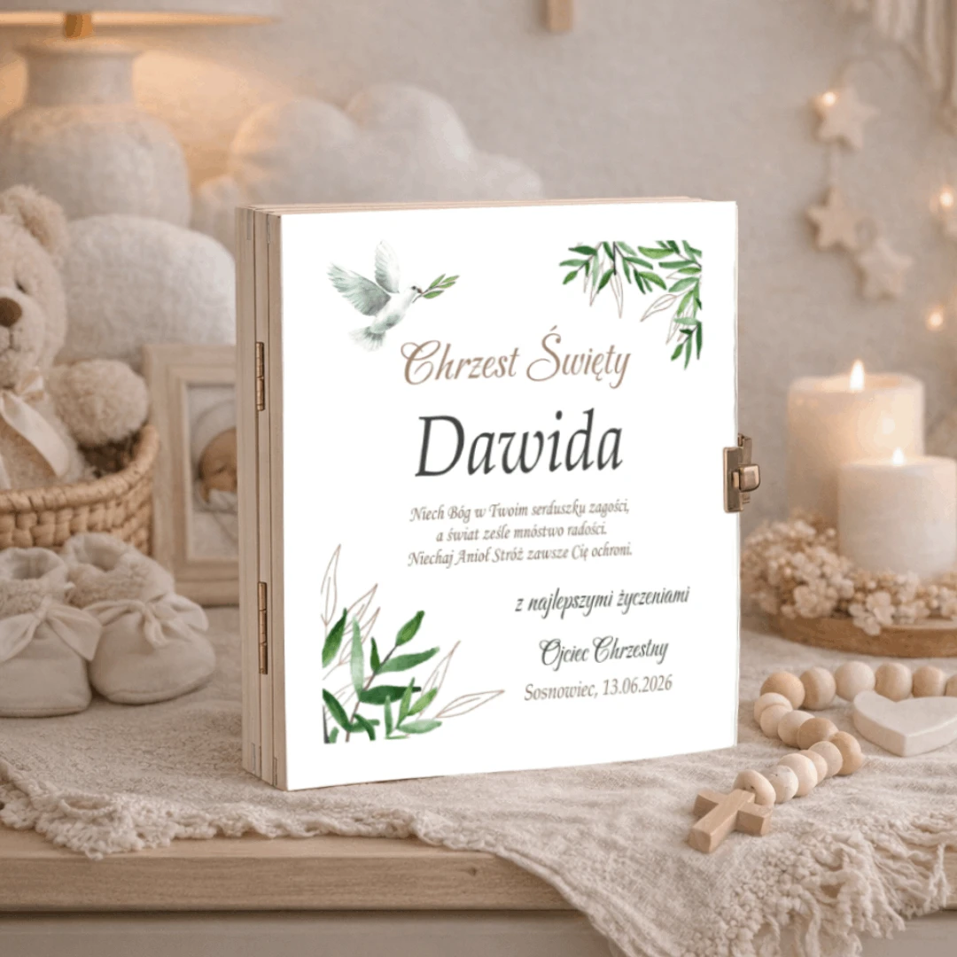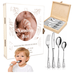 Sztućce dla dzieci Gerlach zestaw w drewnianym etui z nadrukiem dla dziewczynki na chrzest