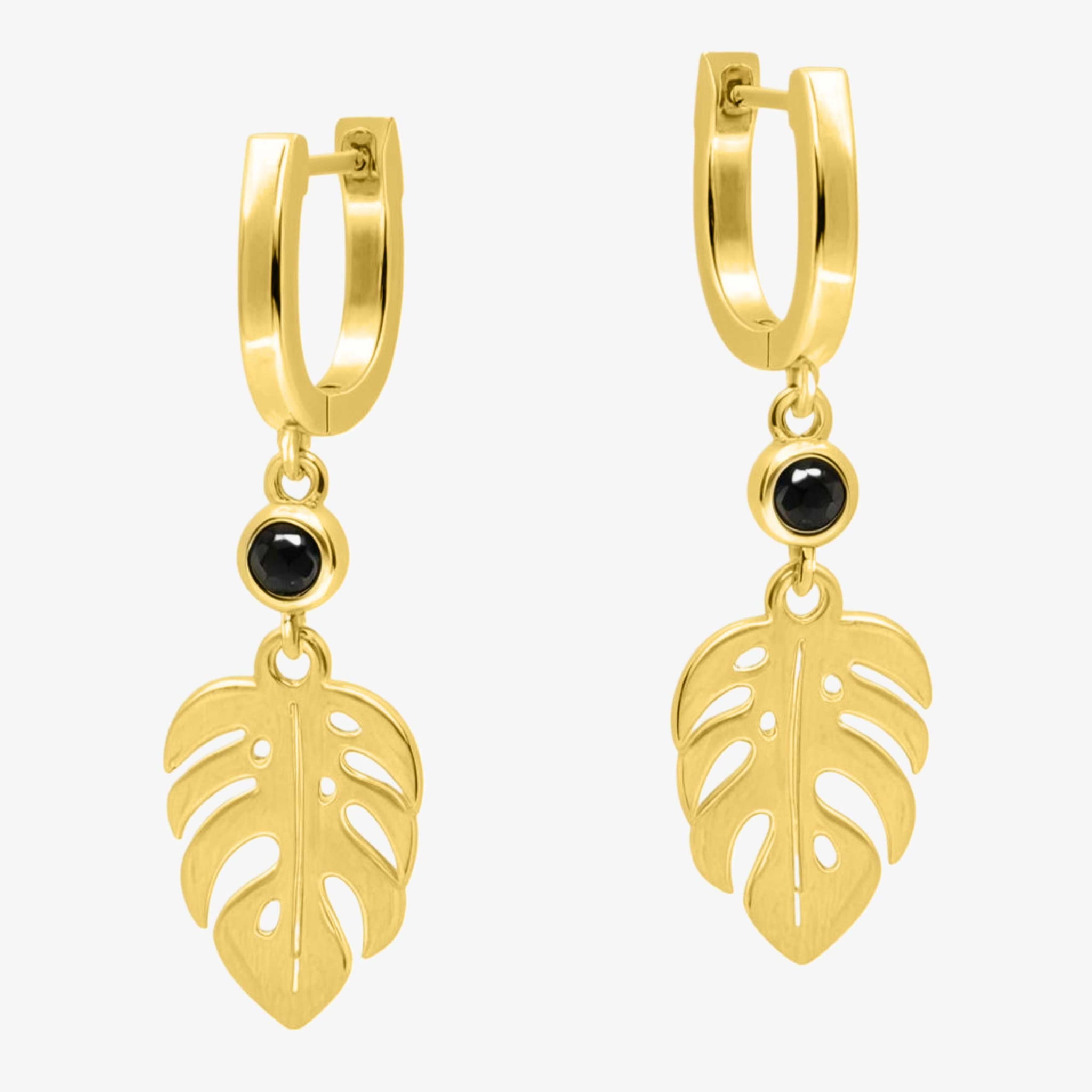 Podkreśl styl i osobowość bliskiej Ci osoby, wręczając jej srebrne pozłacane kolczyki z listkami i czarną cyrkonią.