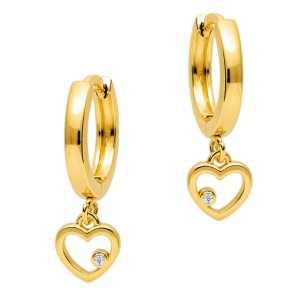 Te srebrne kolczyki to połączenie klasycznego piękna i nowoczesnej formy. Zawieszka w kształcie serduszka, w której umieszczona została biała cyrkonia, dodaje im uroku i blasku. Starannie wykonane pozłacane srebro doskonale komponuje się z mieniącym się kamieniem, tworząc biżuterię, która zachwyca w każdym świetle.