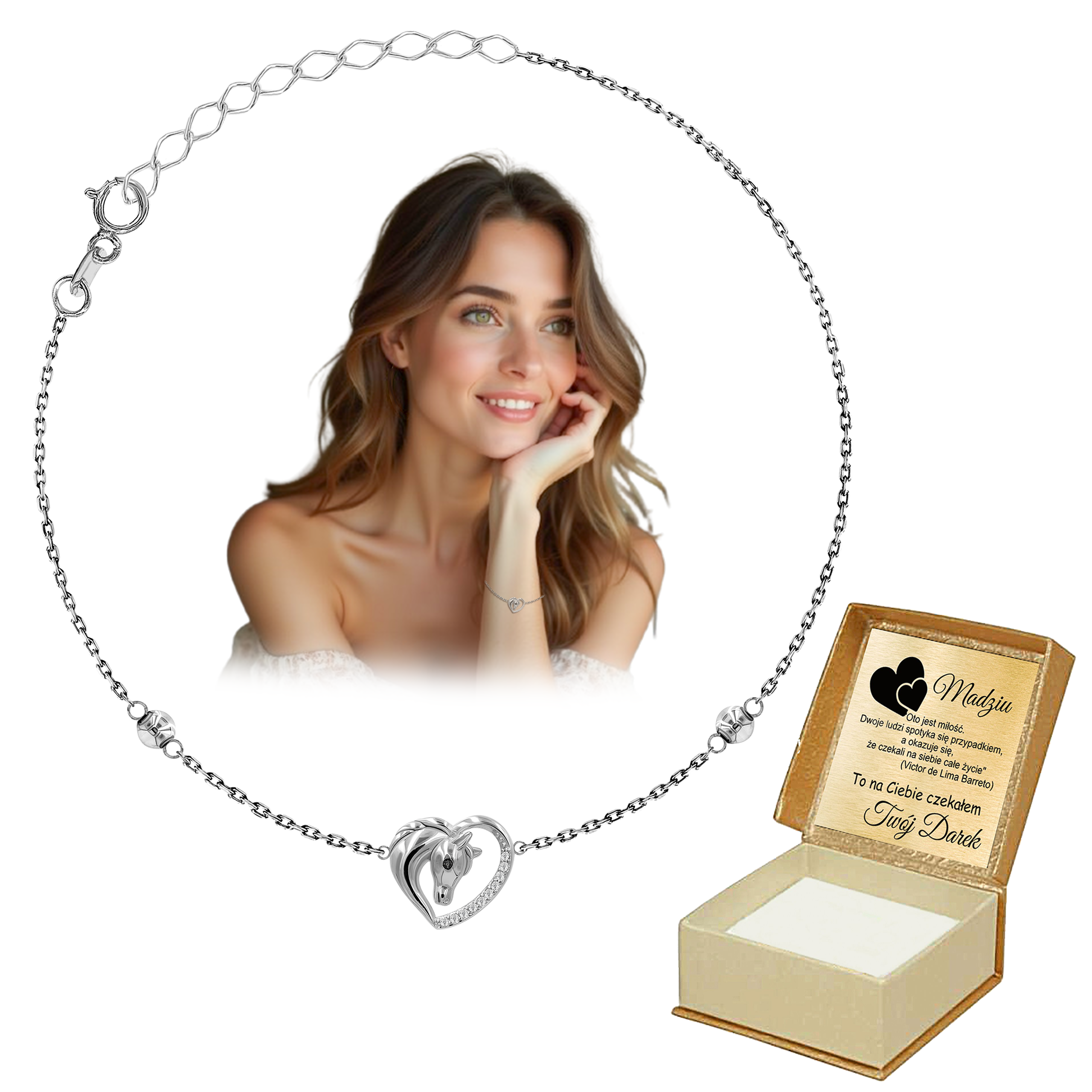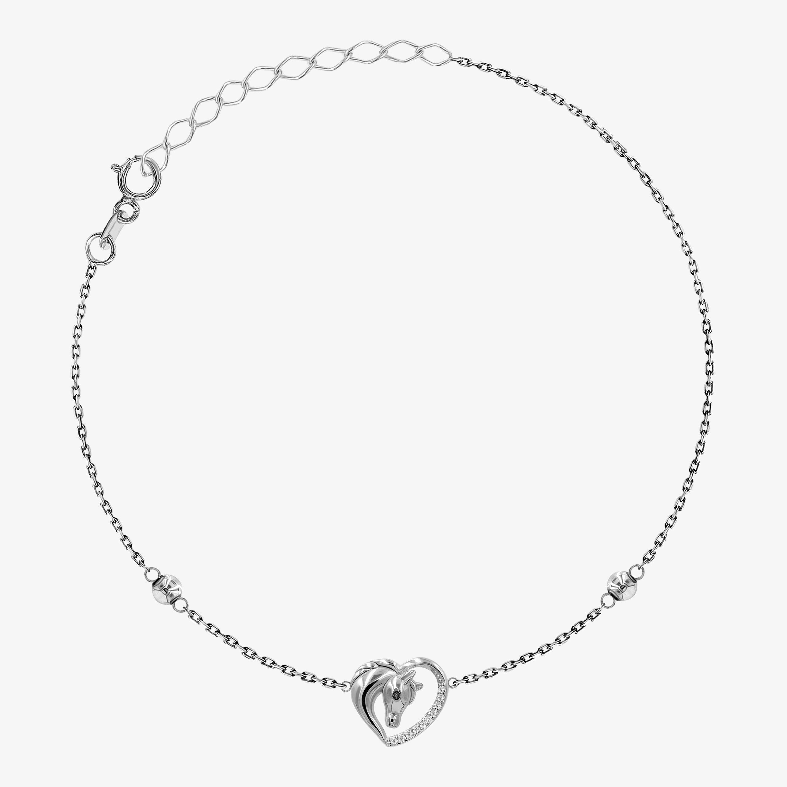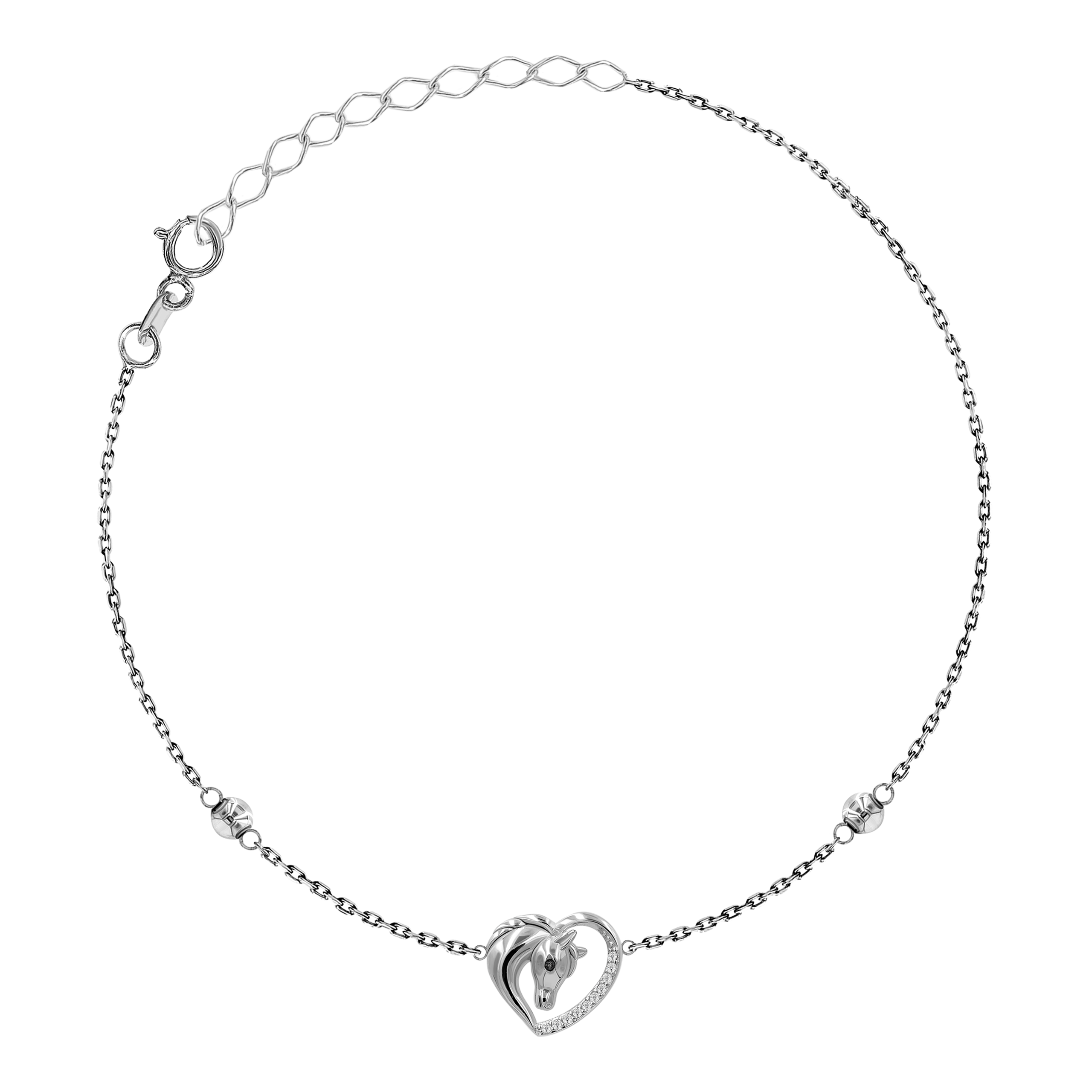 Srebrna Celebrytka Konik w serduszku błyszczące cyrkonie kuleczki