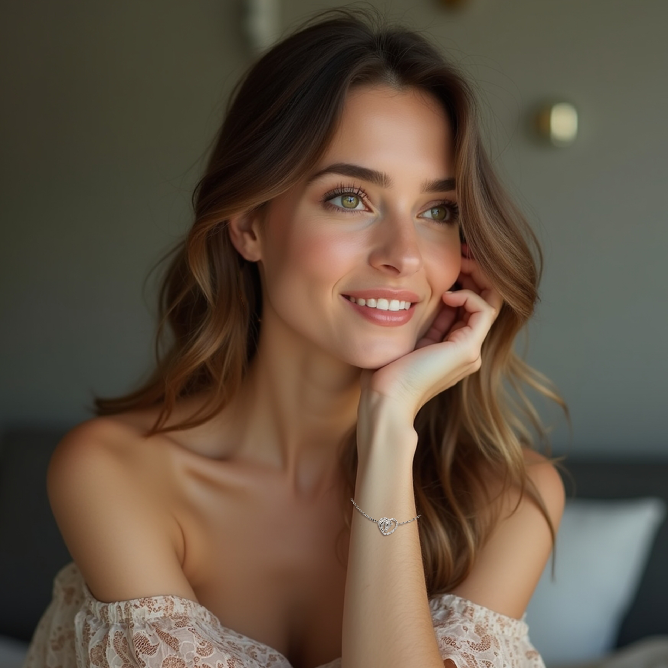 Bransoletka zawieszka serduszko - błyszczące białe cyrkonie