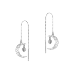 Srebrne Kolczyki Przeciągane z Blaszką i Serduszkiem i Księżycem z Oryginalnym Wzorem