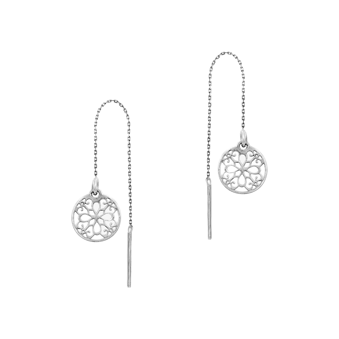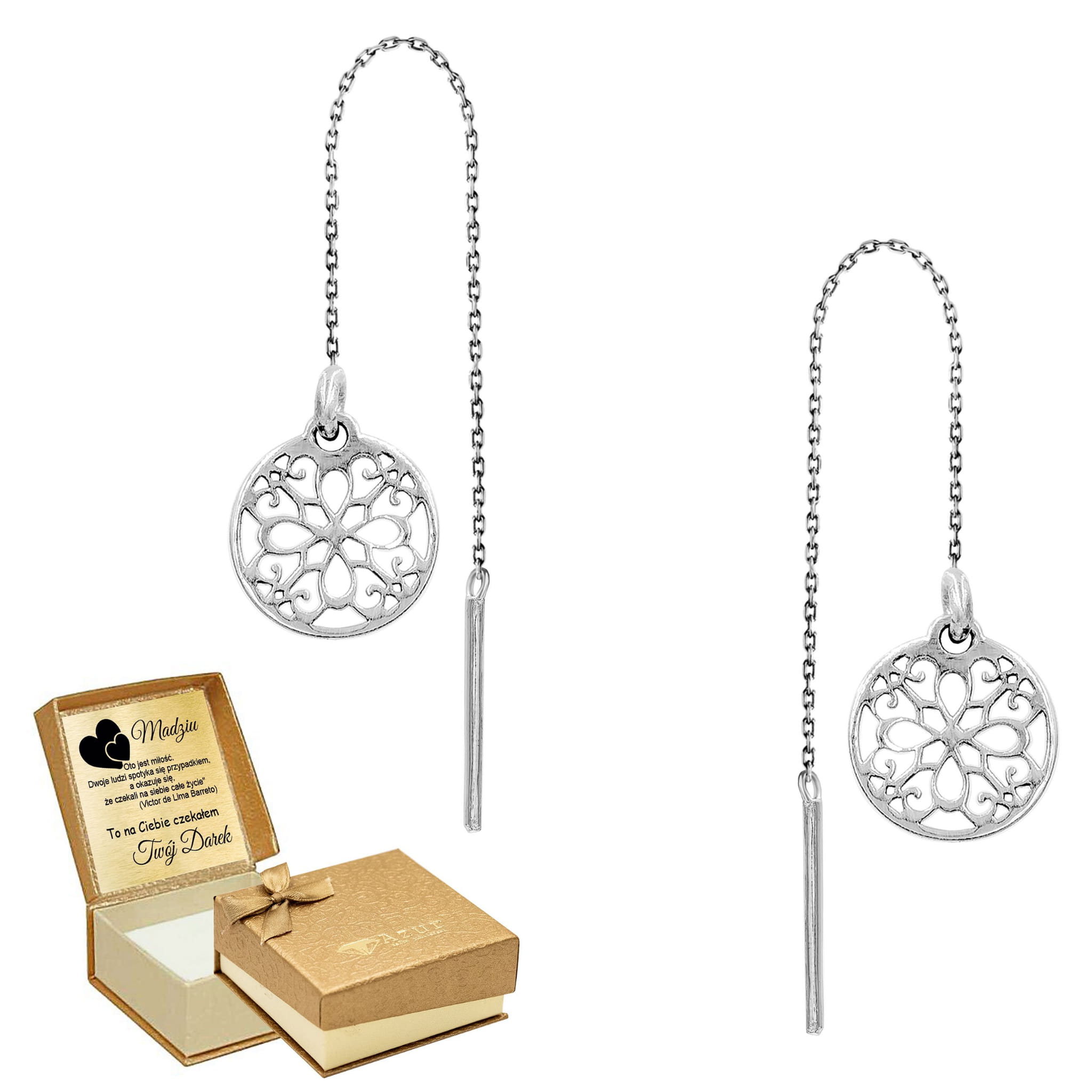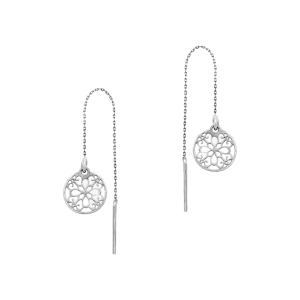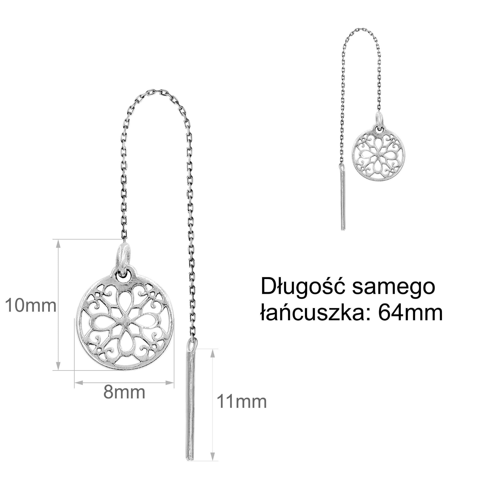 Srebrne Kolczyki Przeciągane z Blaszką i Kółkiem z Ażurowym Wzorem