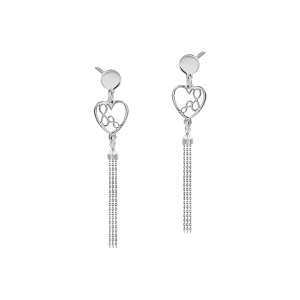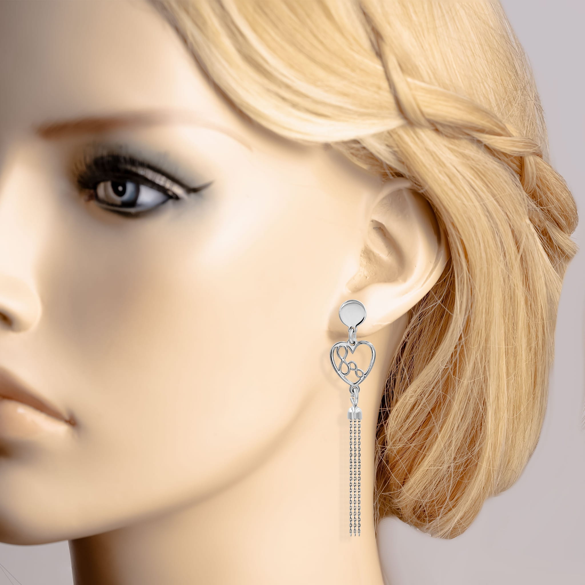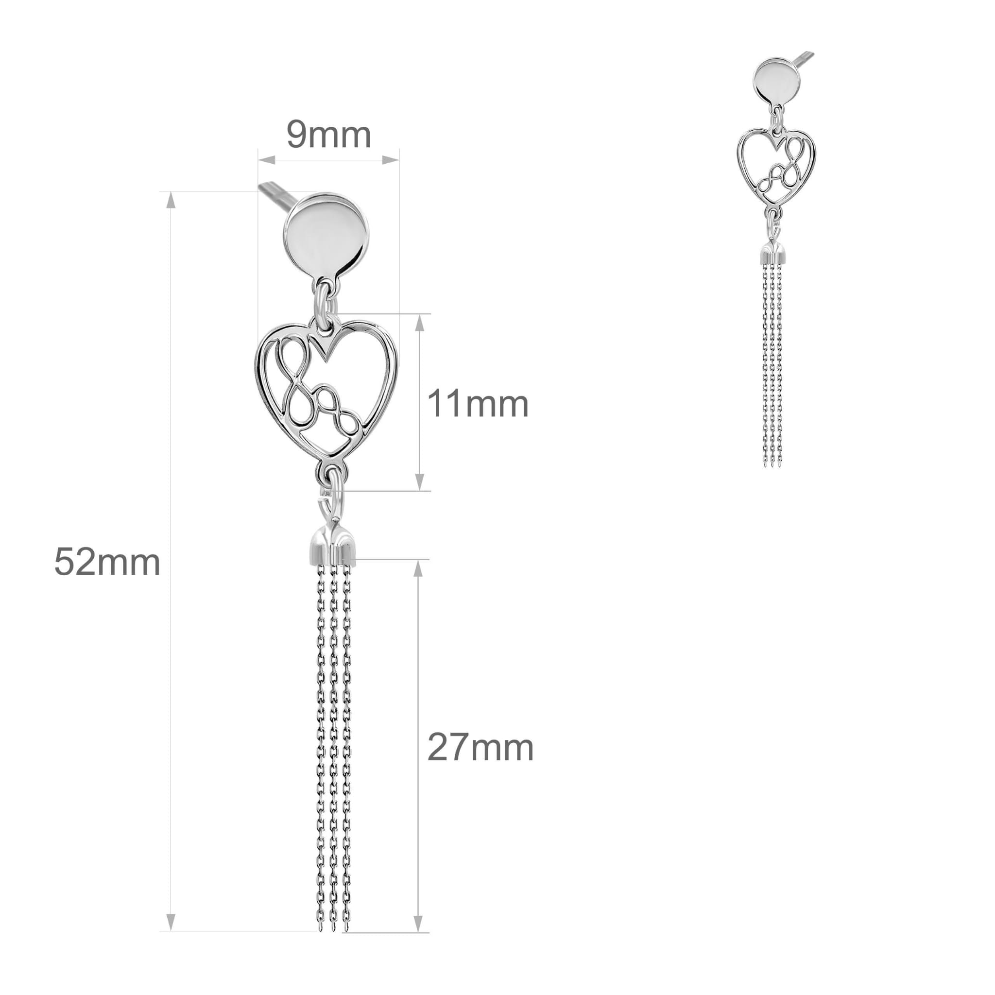 Srebrne Kolczyki Serduszka ze Znakami Nieskończoności i Zwisające Łańcuszki Sztyft
