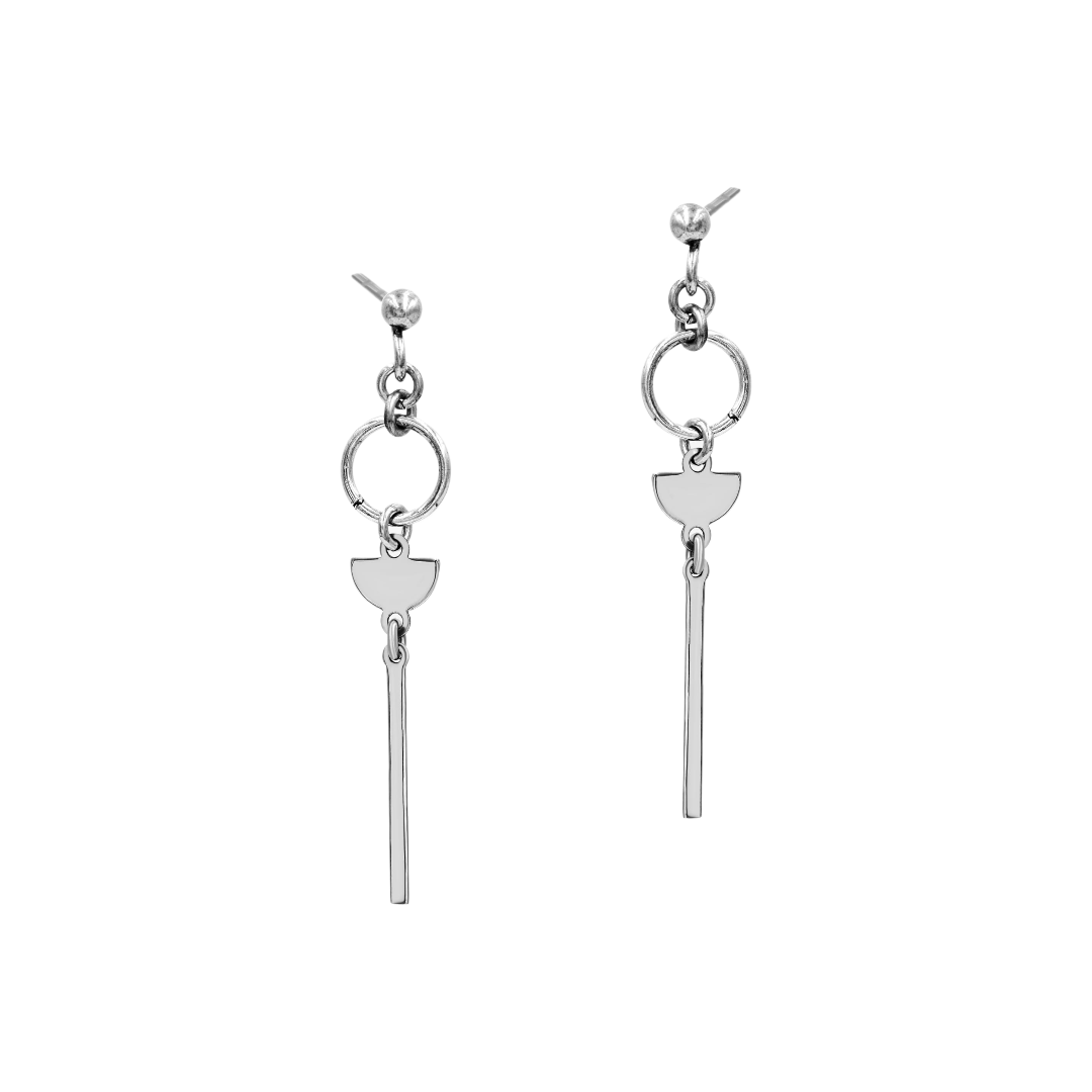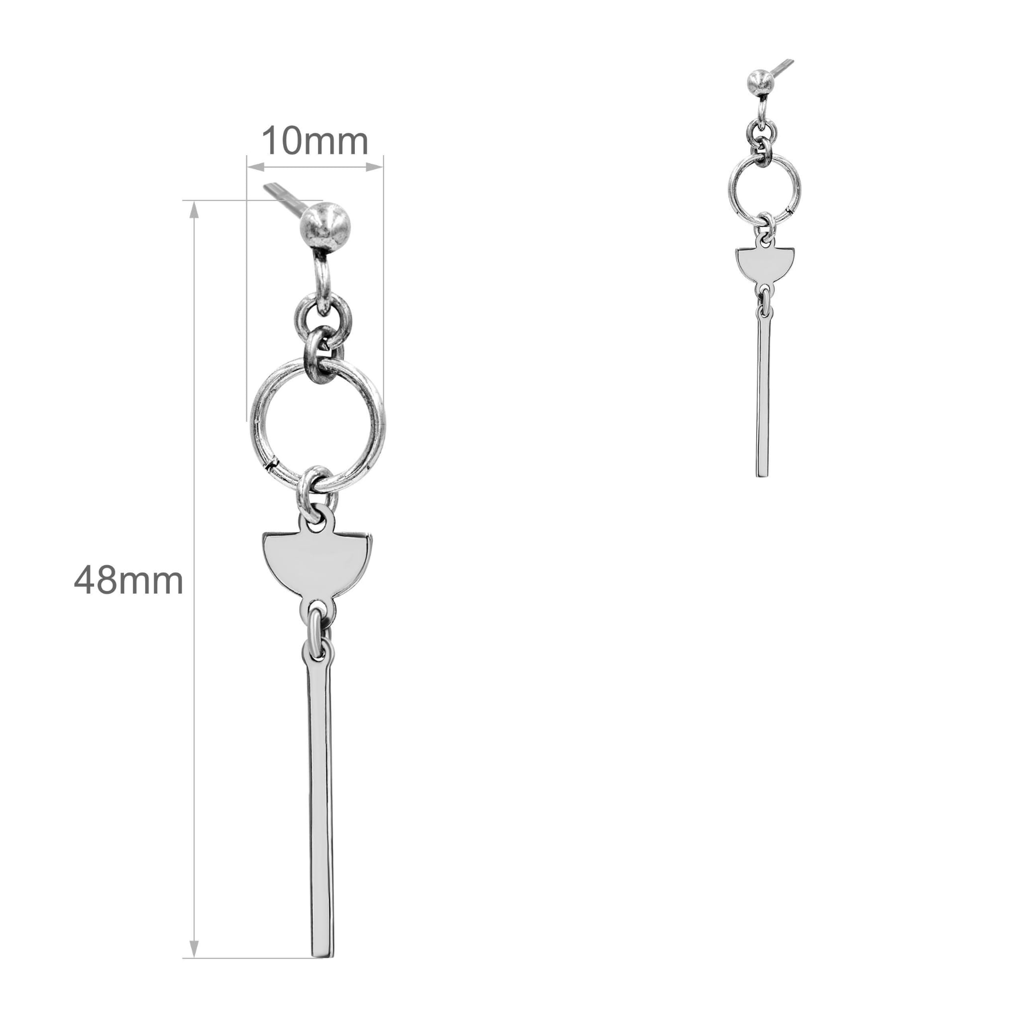 Srebrne Kolczyki Sztyft Okrągłe i Półkole Wiszące z Blaszką