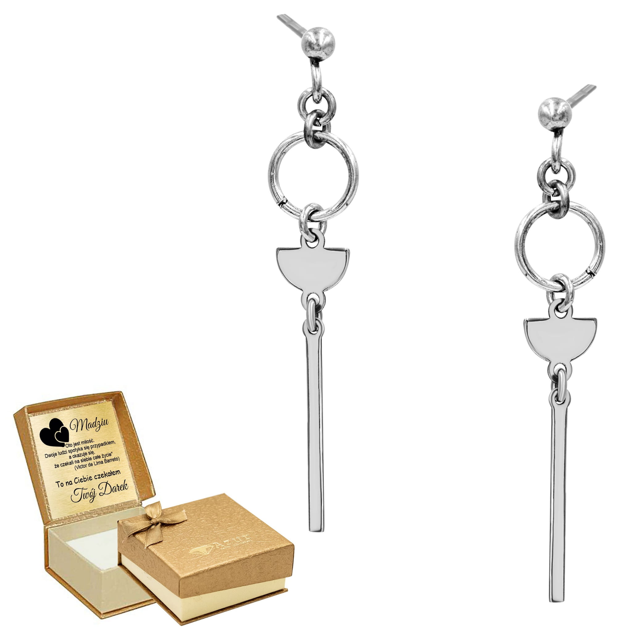 Pozłacane srebrne kolczyki z białymi cyrkoniami – biżuteria z grawerem