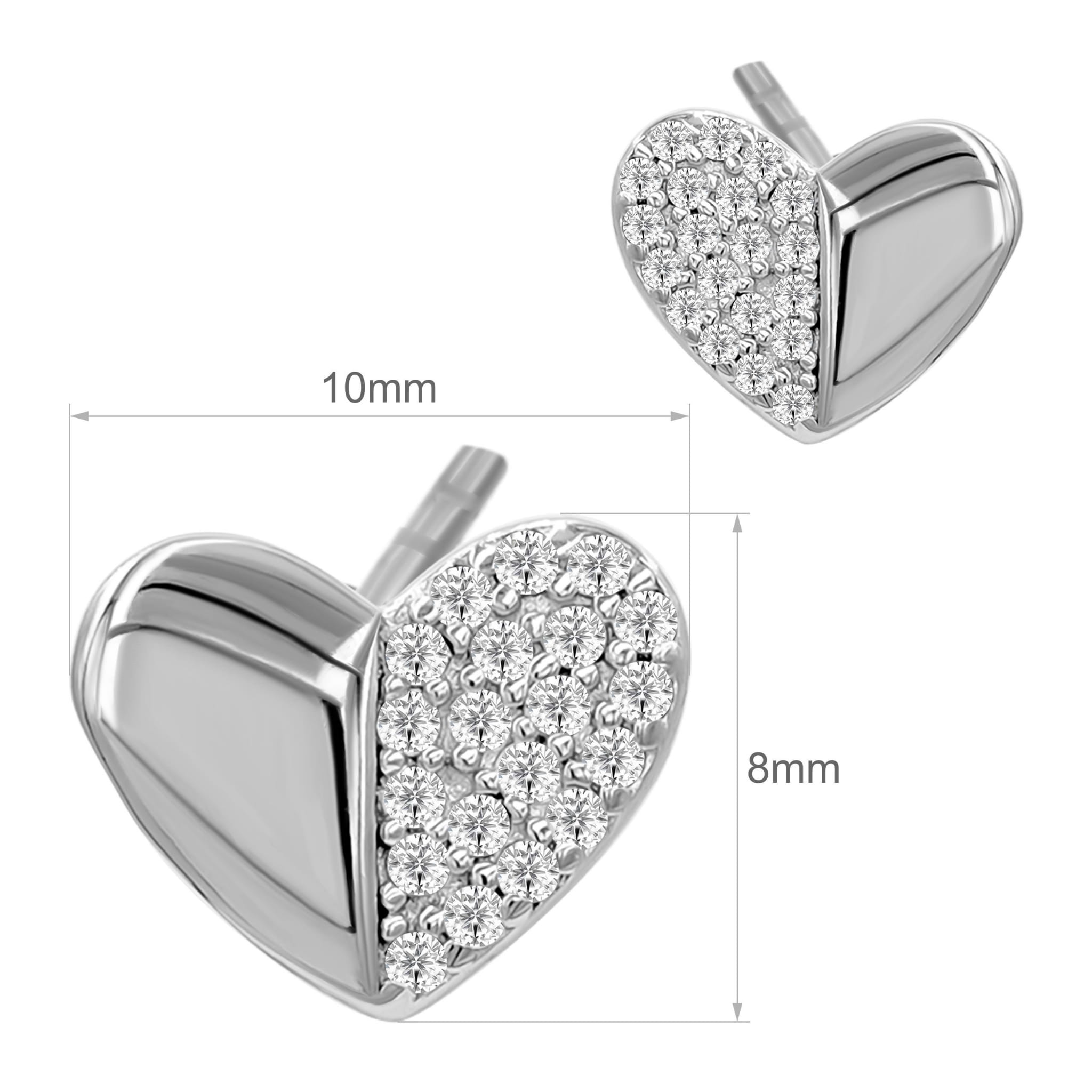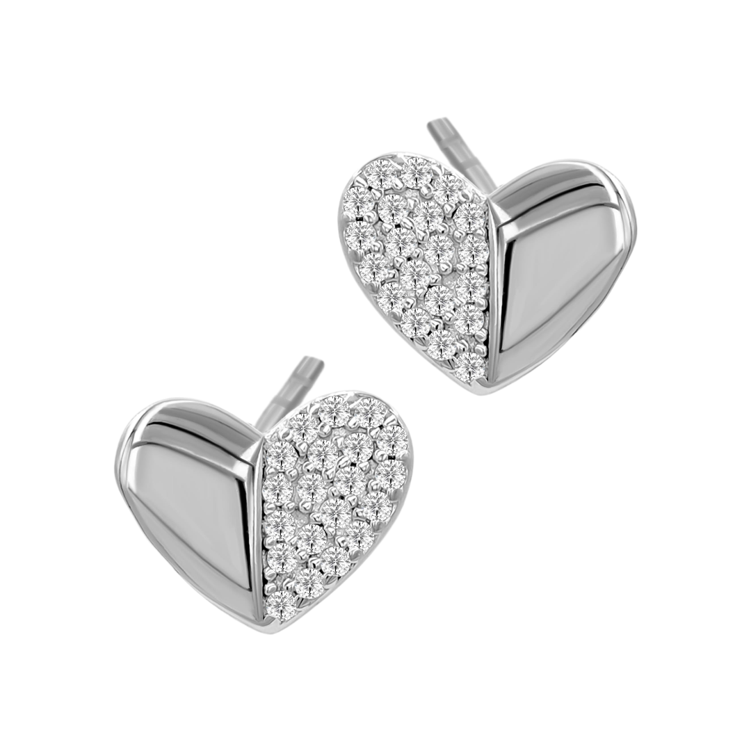 Srebrne Kolczyki Sztyft Serduszka z Osadzonymi Białymi Cyrkoniami