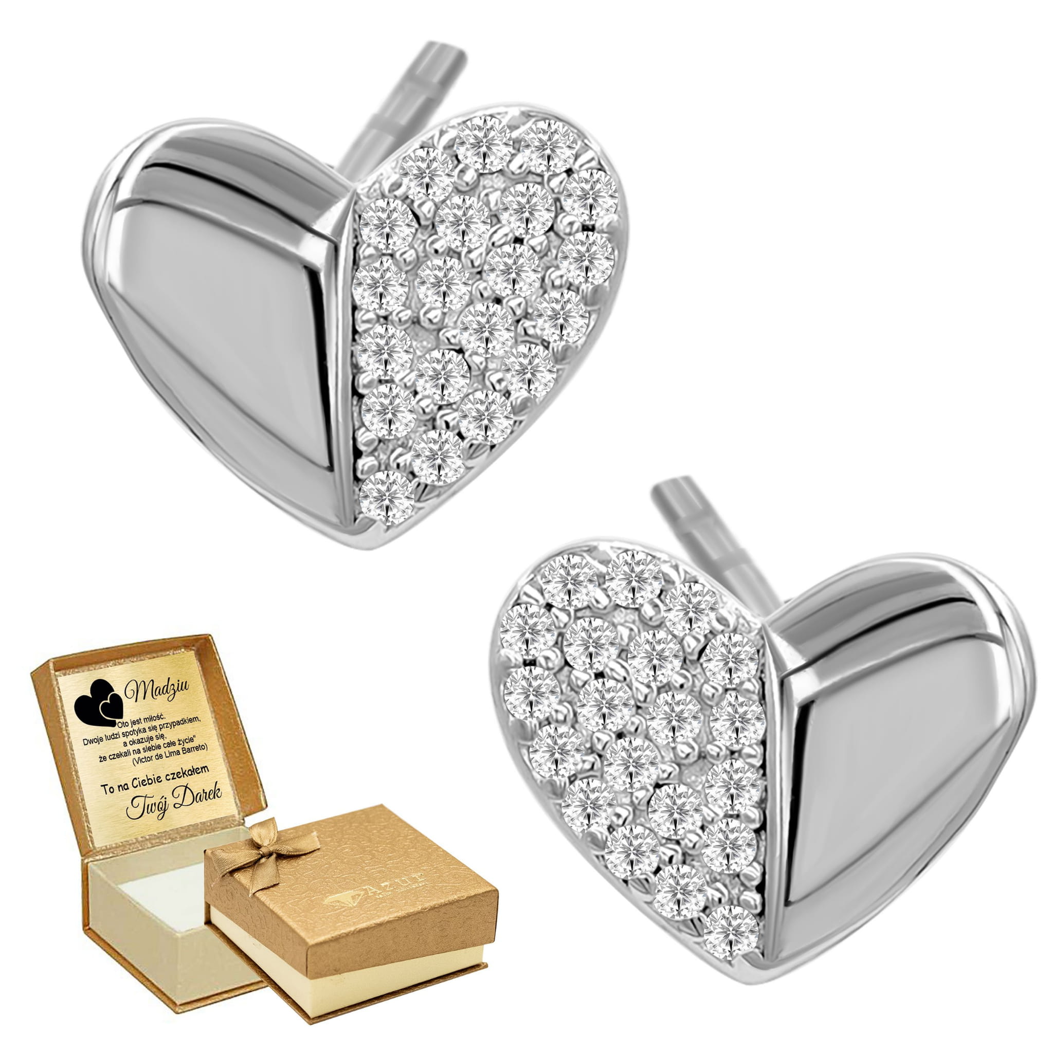 Pozłacane srebrne kolczyki z białymi cyrkoniami – biżuteria z grawerem