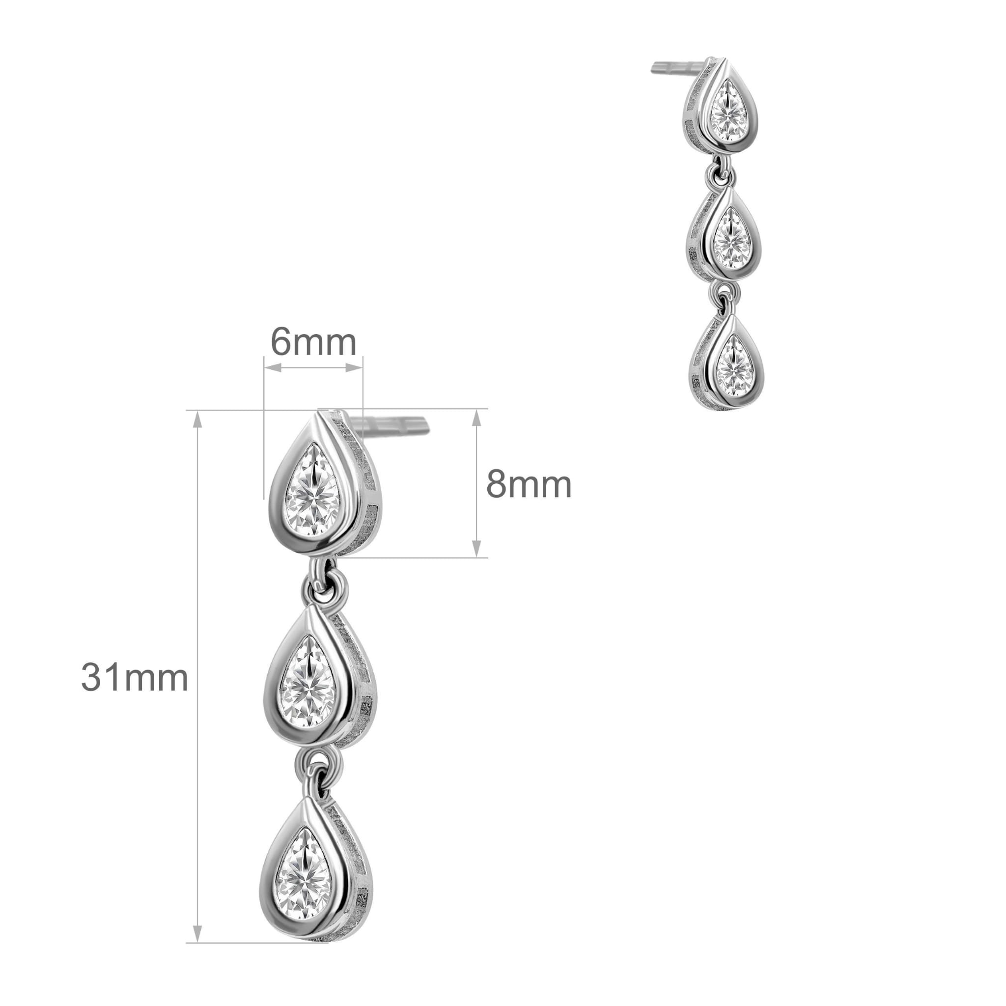 Srebrne Kolczyki Sztyft Wiszące Łezki z Białymi Cyrkoniami