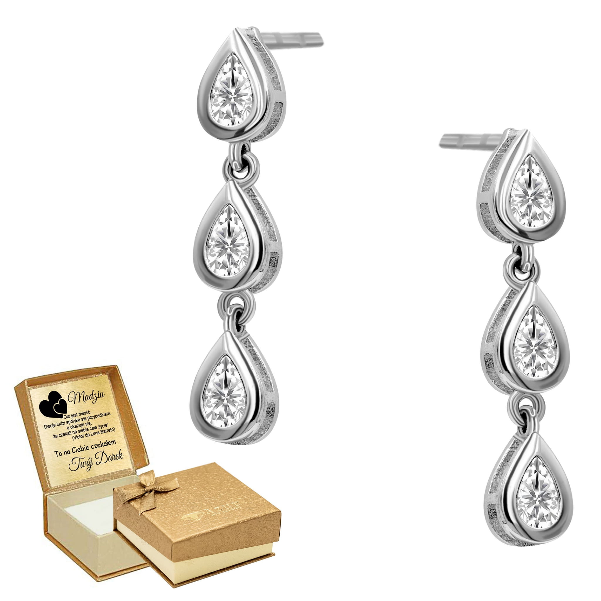 Pozłacane srebrne kolczyki z białymi cyrkoniami – biżuteria z grawerem