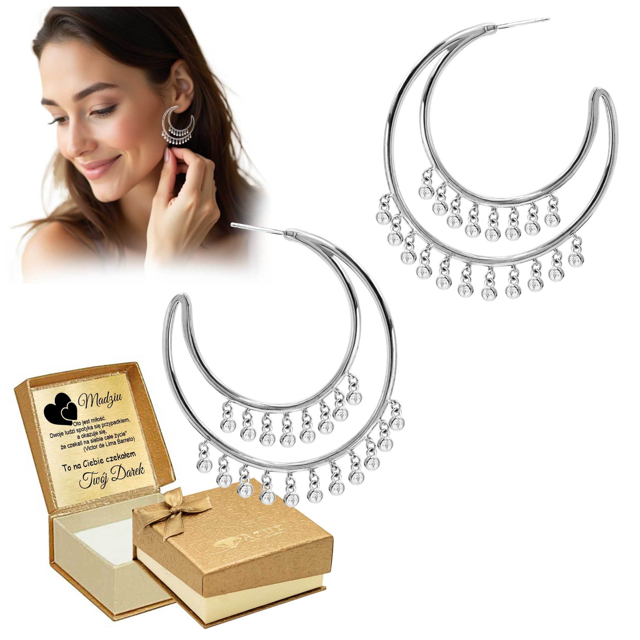 Srebrne kolczyki w kształcie księżyca z cyrkoniami – elegancki dodatek dla niej!