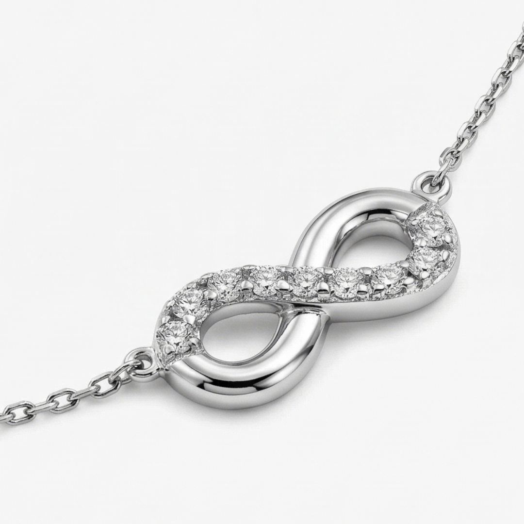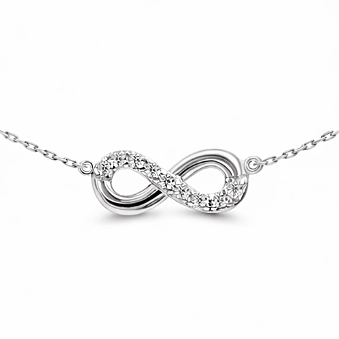 Srebrny naszyjnik nieskończoność z cyrkoniami – symbol wiecznej miłości