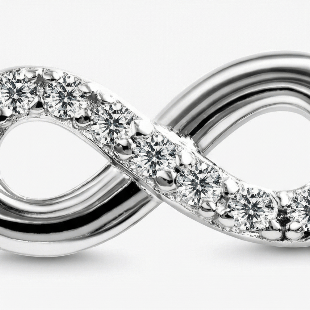 Elegancki srebrny naszyjnik nieskończoność to biżuteria pełna symboliki i subtelnego blasku. Motyw nieskończoności oznacza trwałość uczuć, wierność i wieczną więź – dlatego naszyjnik jest wyjątkowym prezentem dla ukochanej osoby lub piękną pamiątką ważnych chwil.
