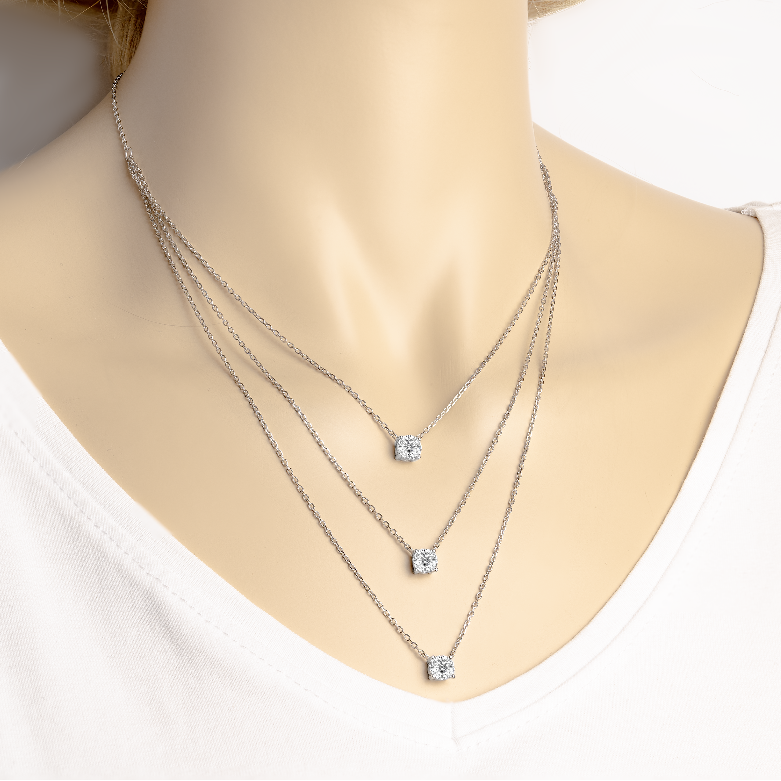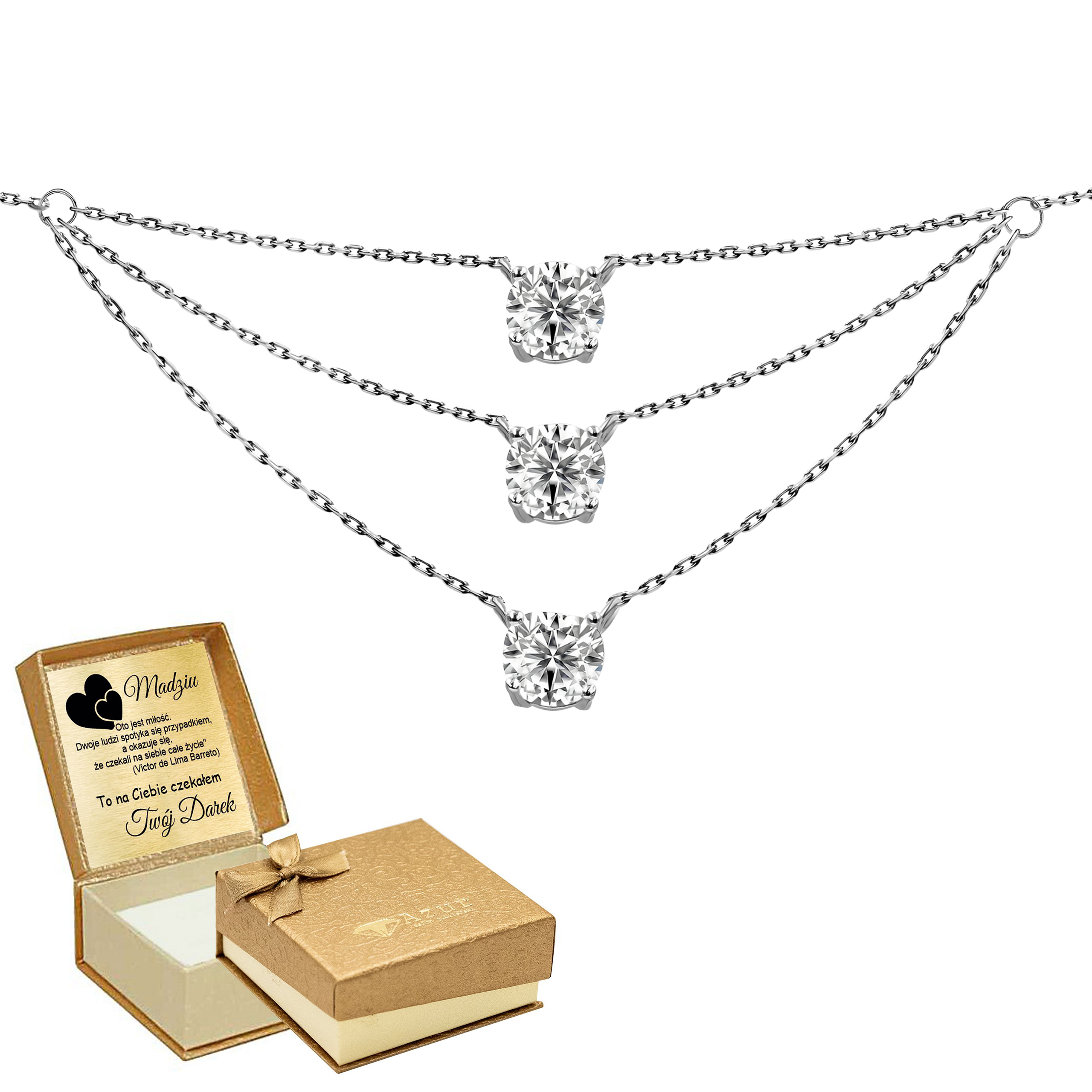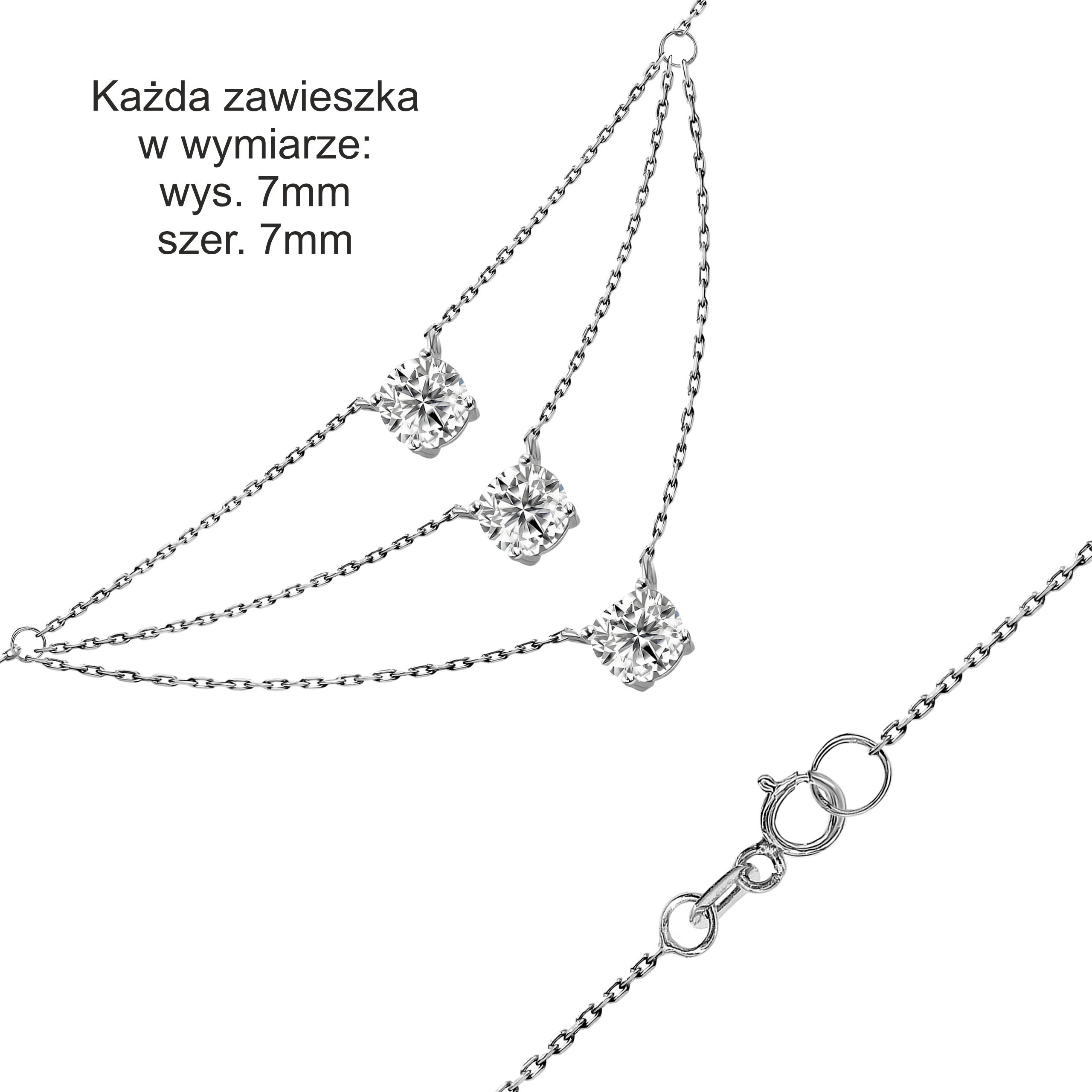 Srebrny Naszyjnik Potrójny z Zawieszkami z Osadzonymi Białymi Cyrkoniami