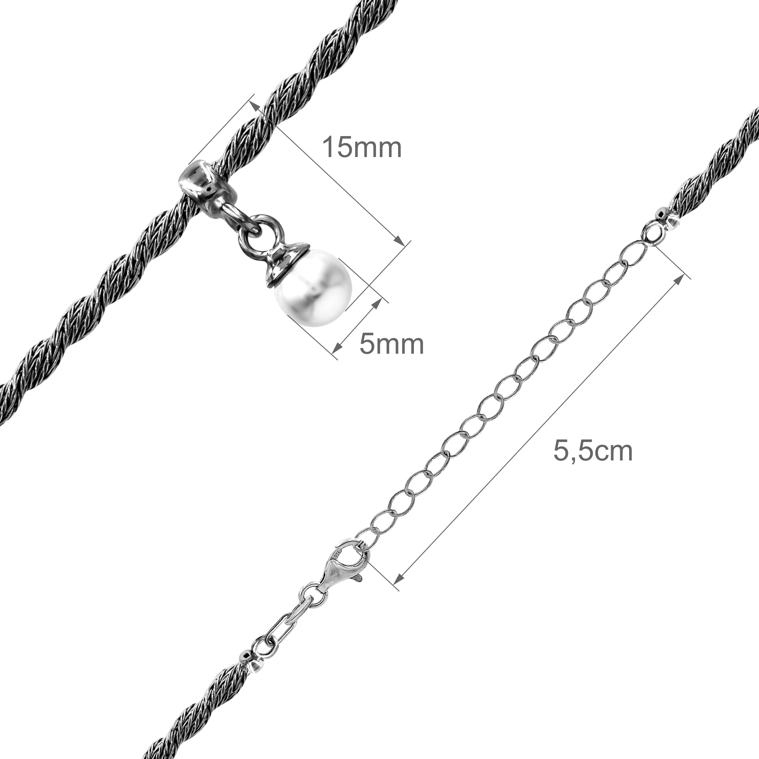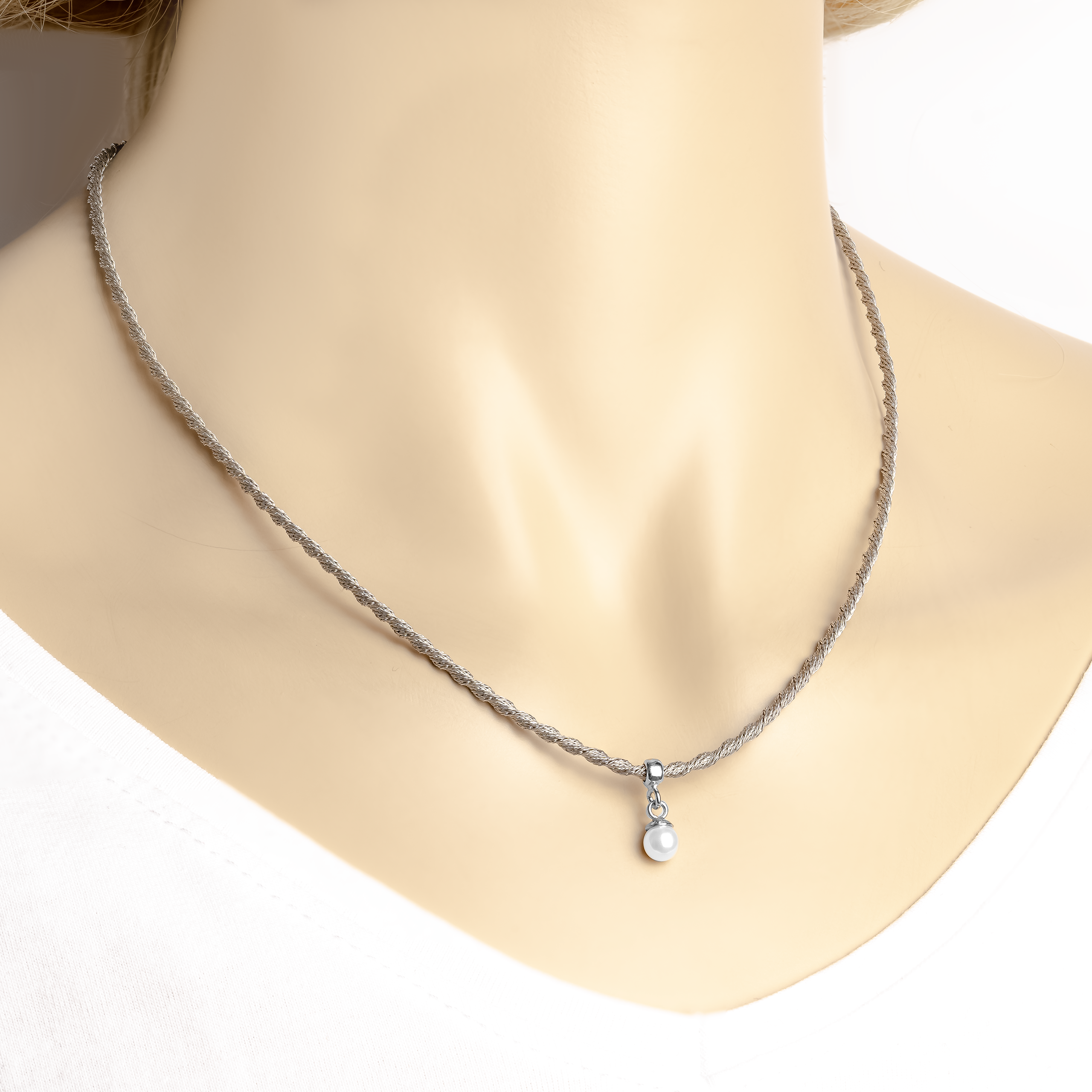 Srebrny Naszyjnik Przeplatany Zawieszka Biała Perła