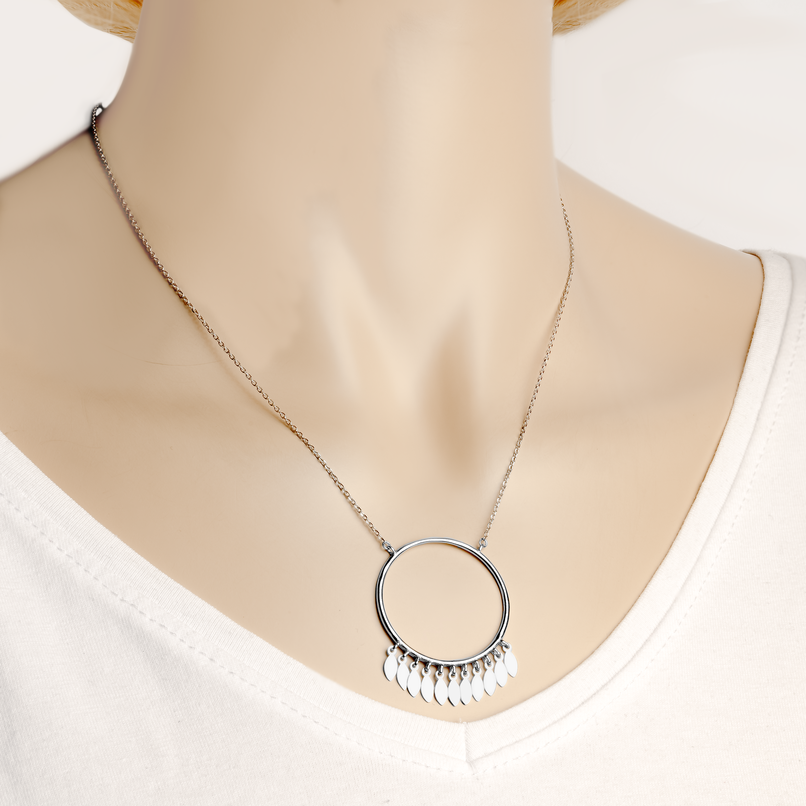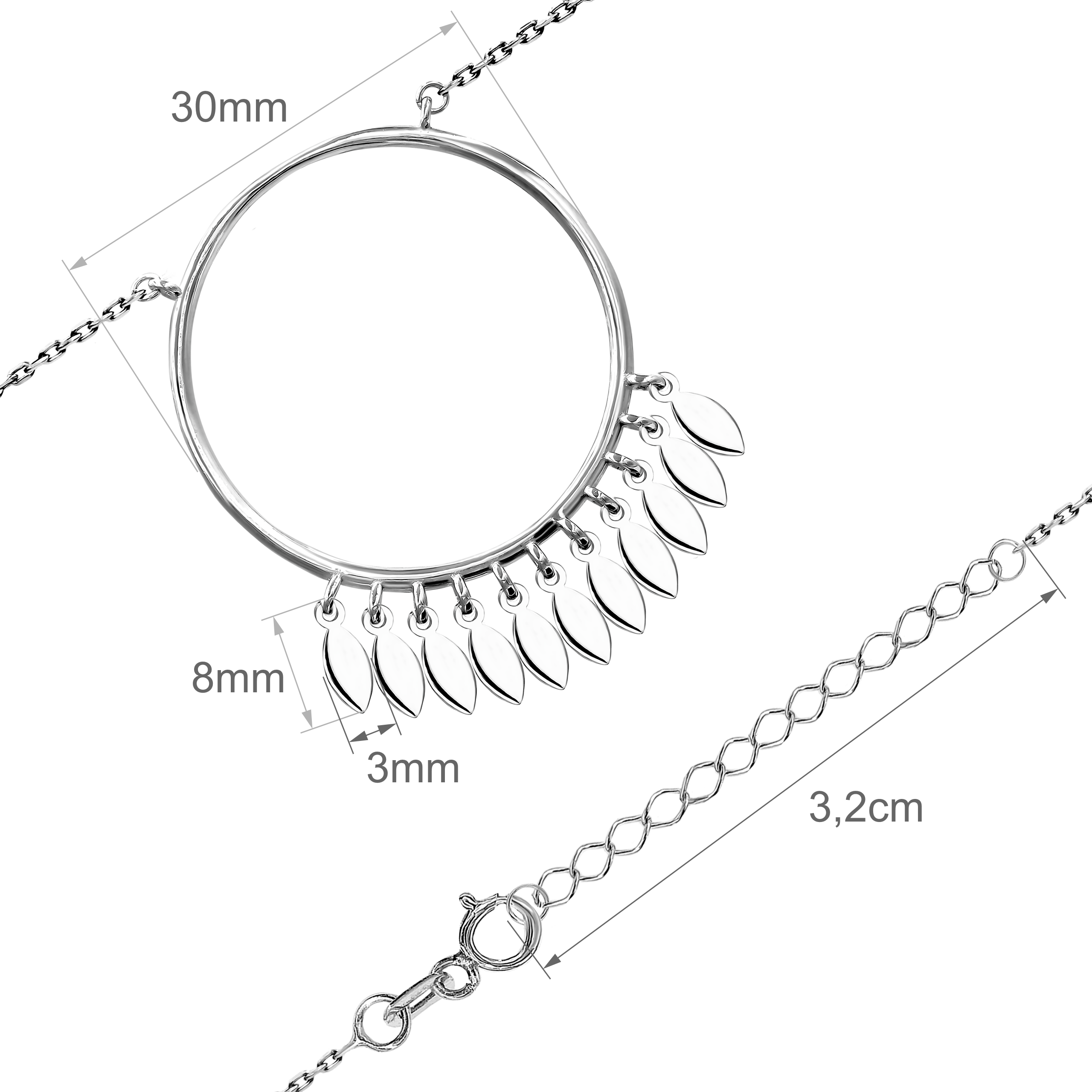 Srebrny Naszyjnik z Kółkiem i Zawieszkami Łezkami