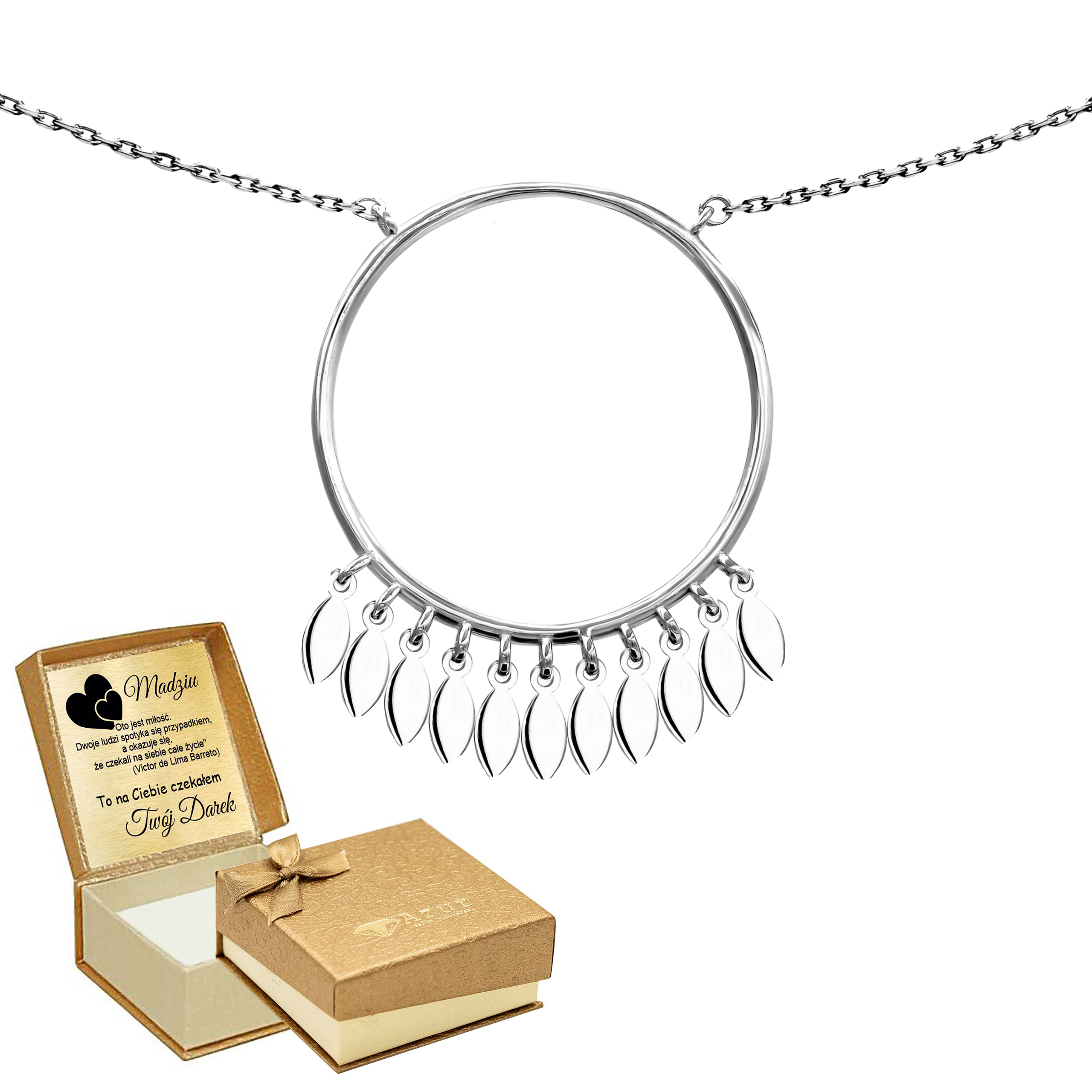 Do naszyjnika pudełeczko na biżuterię oraz indywidualnie spersonalizowany przez Państwa grawer dołączone GRATIS.