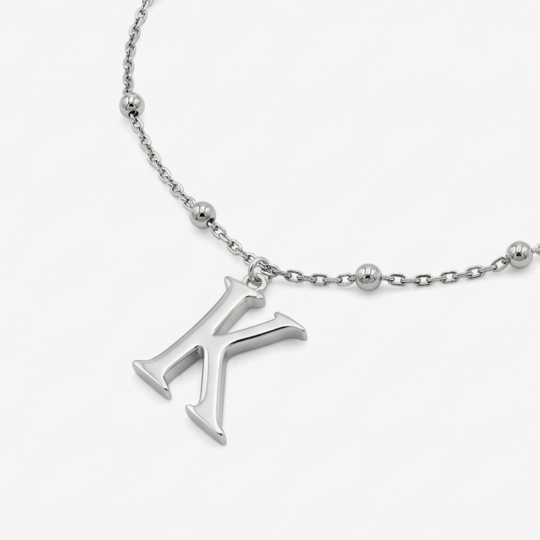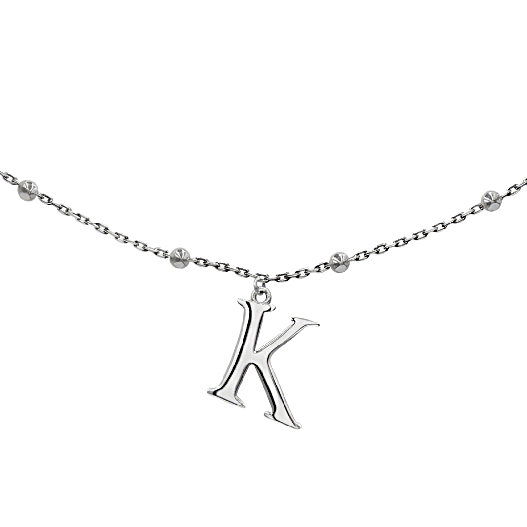 Srebrny Naszyjnik z Kuleczkami i Zawieszką Literką "K"
