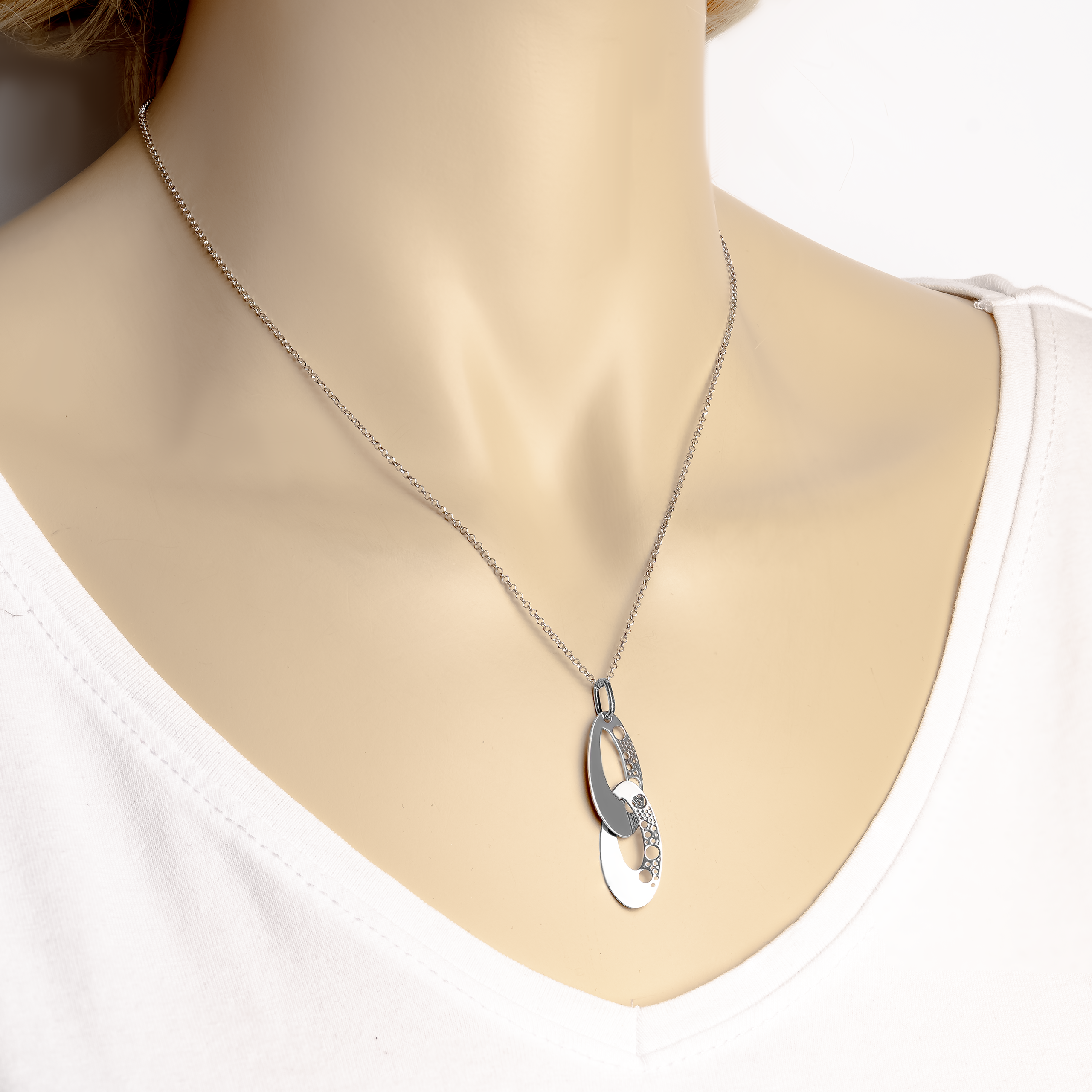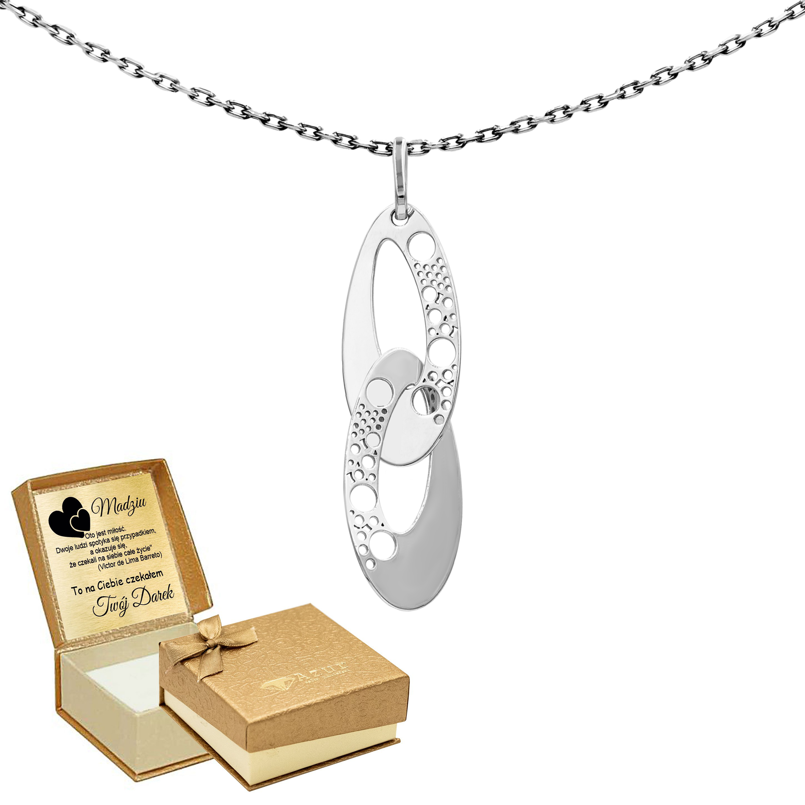Srebrny Naszyjnik z Oryginalnymi Owalnymi Zawieszkami z Niestandardowym Wzorem