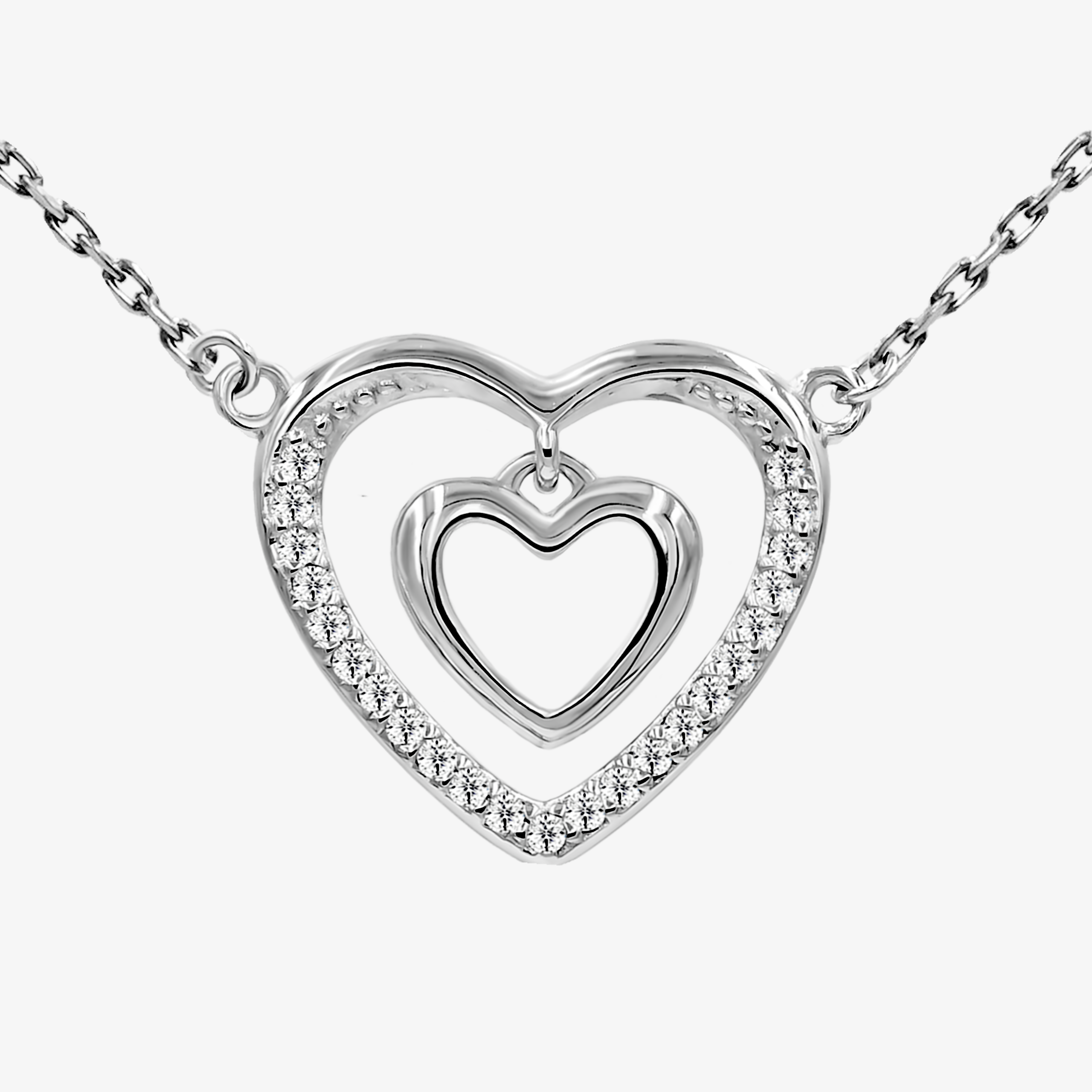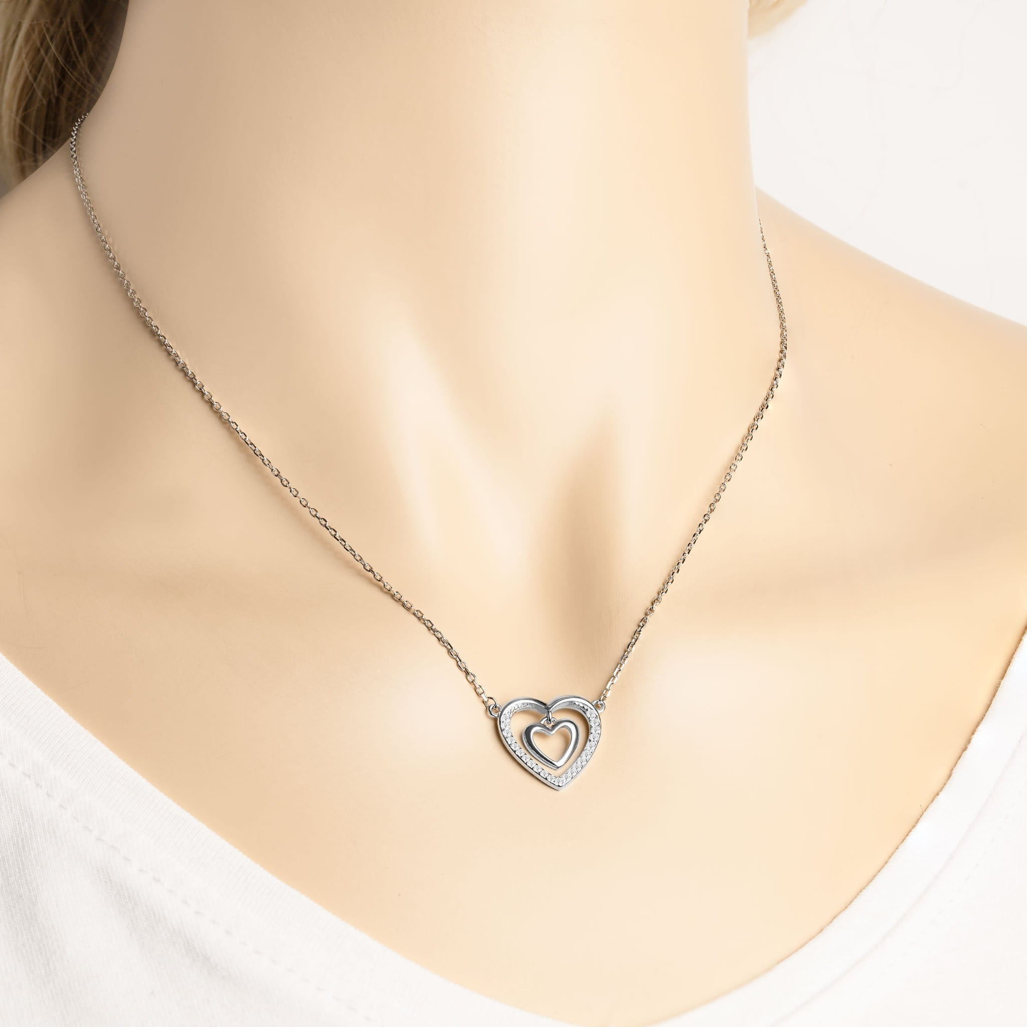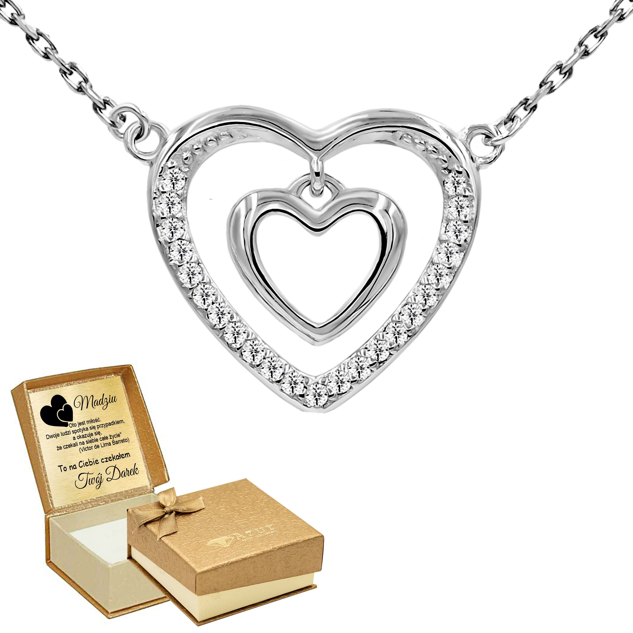 Srebrny Naszyjnik z Zawieszką Dwóch Serduszek Różnej Wielkości z Białymi Cyrkoniami Srebro 0.925