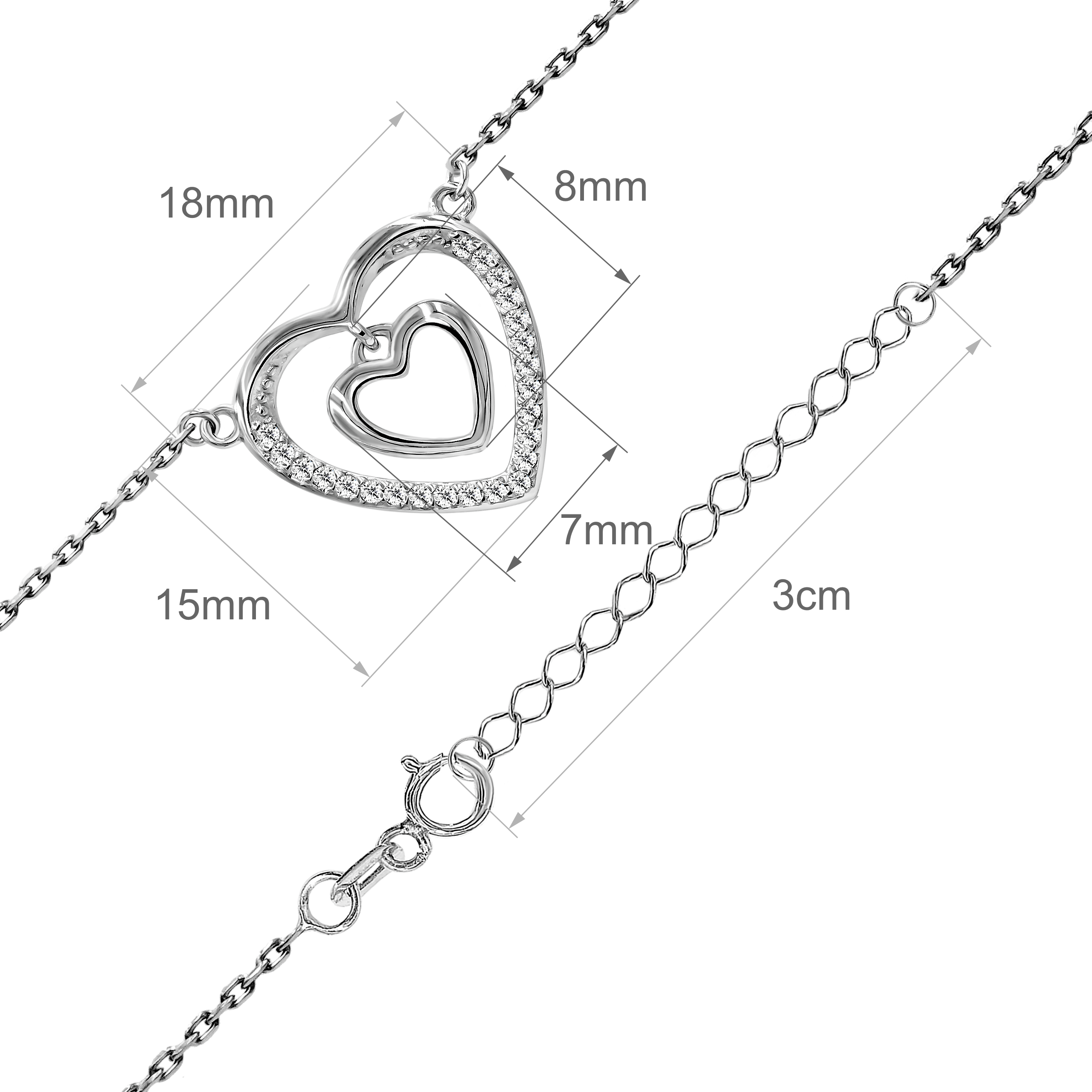 Bransoletka zawieszka serduszko - błyszczące białe cyrkonie