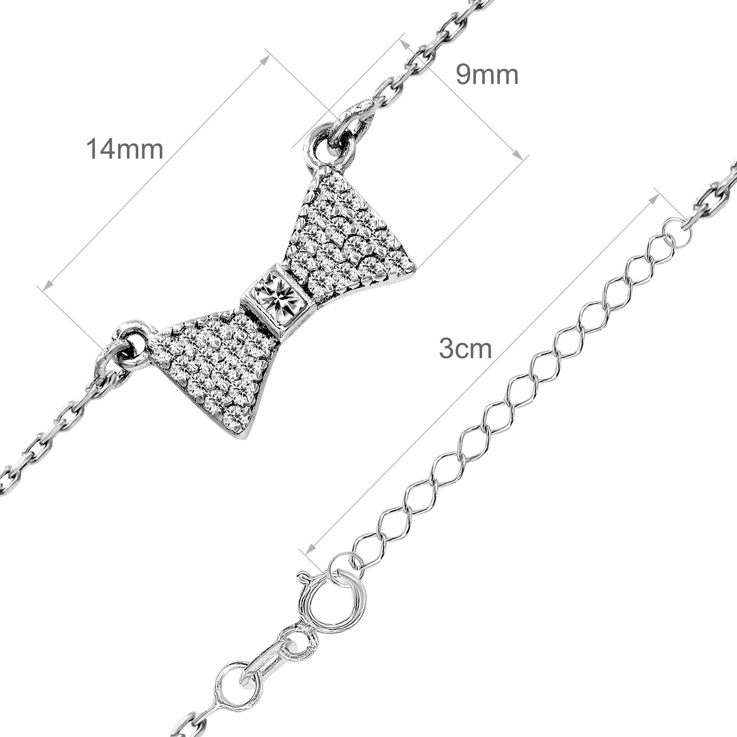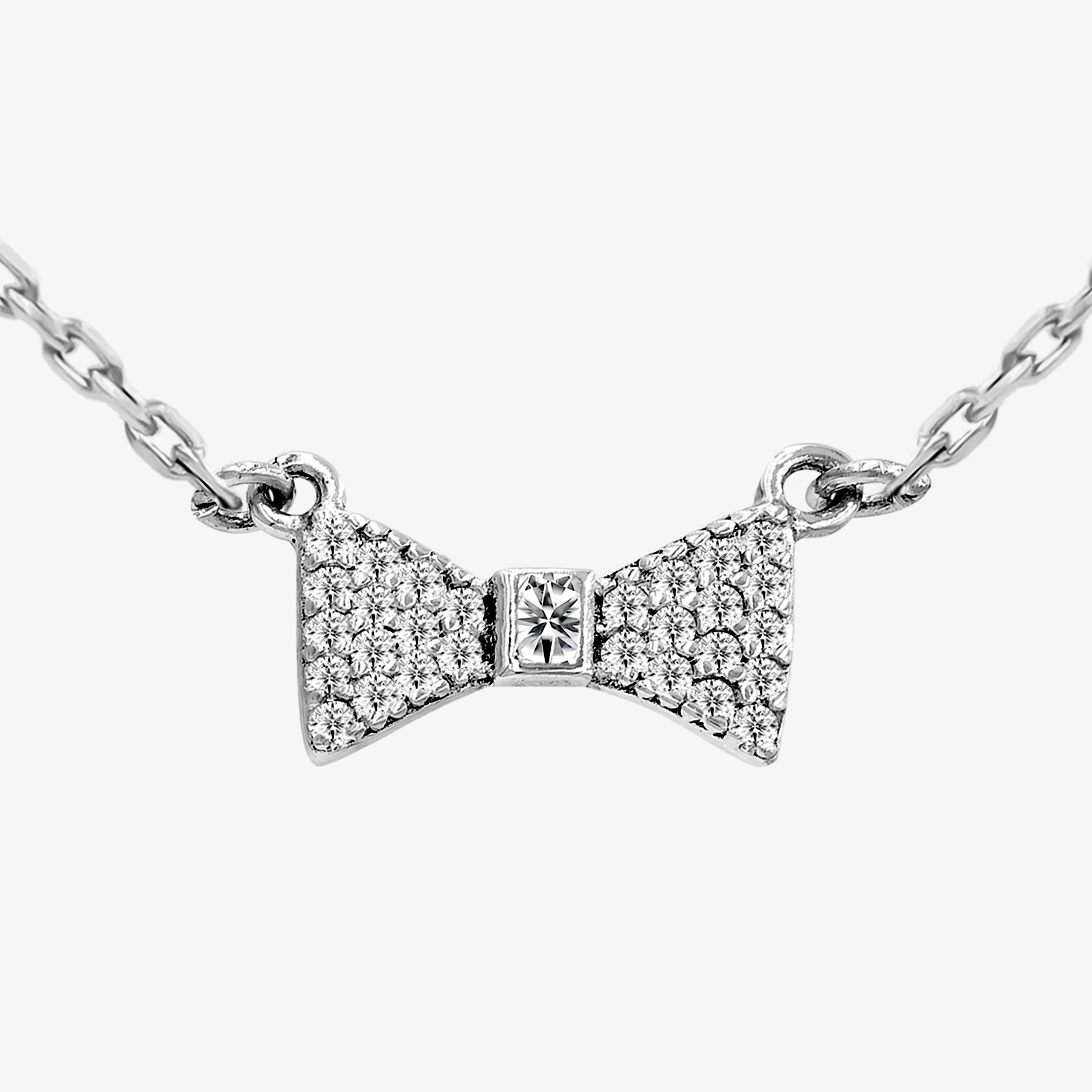 Srebrny Naszyjnik z Zawieszką Kokardki i Osadzonymi Cyrkoniami 0.925