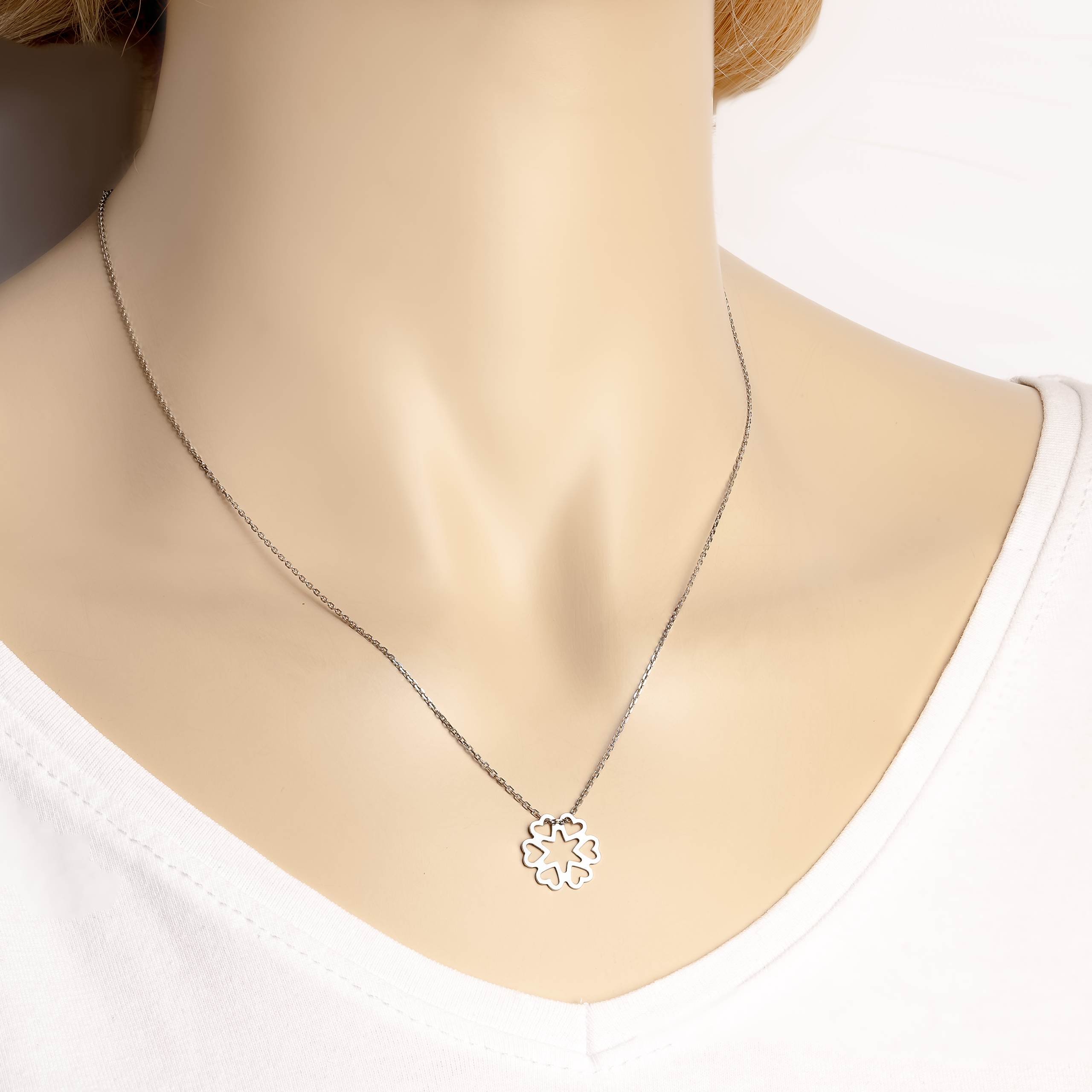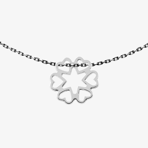 Srebrny Naszyjnik z Zawieszką Kwiatka z Płatkami w Kształcie Serduszek