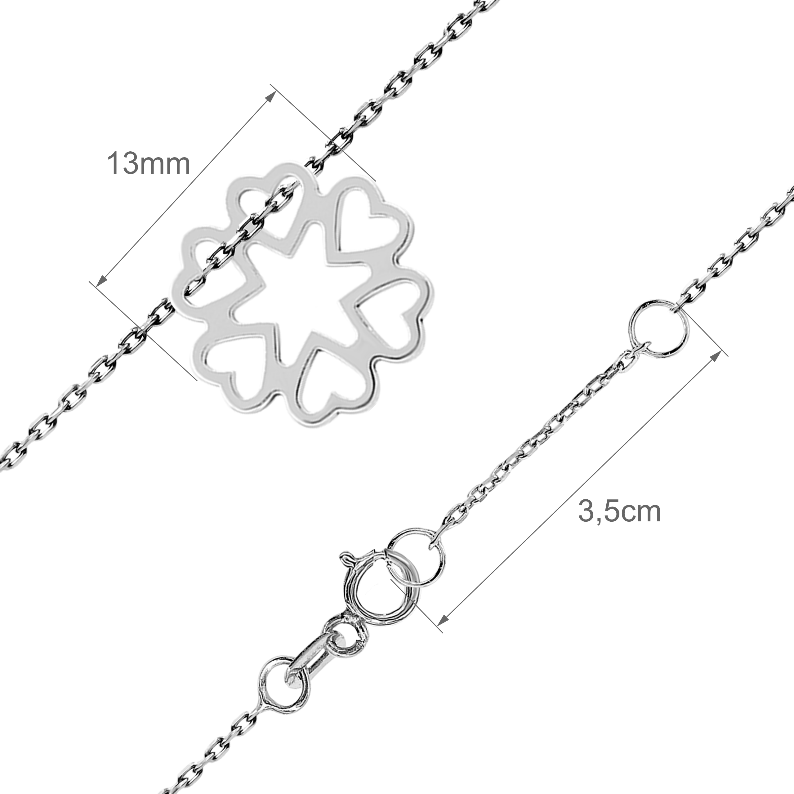 Srebrna bransoletka celebrytka kwiatuszek kółko i motylek o ażurowym wykończeniu