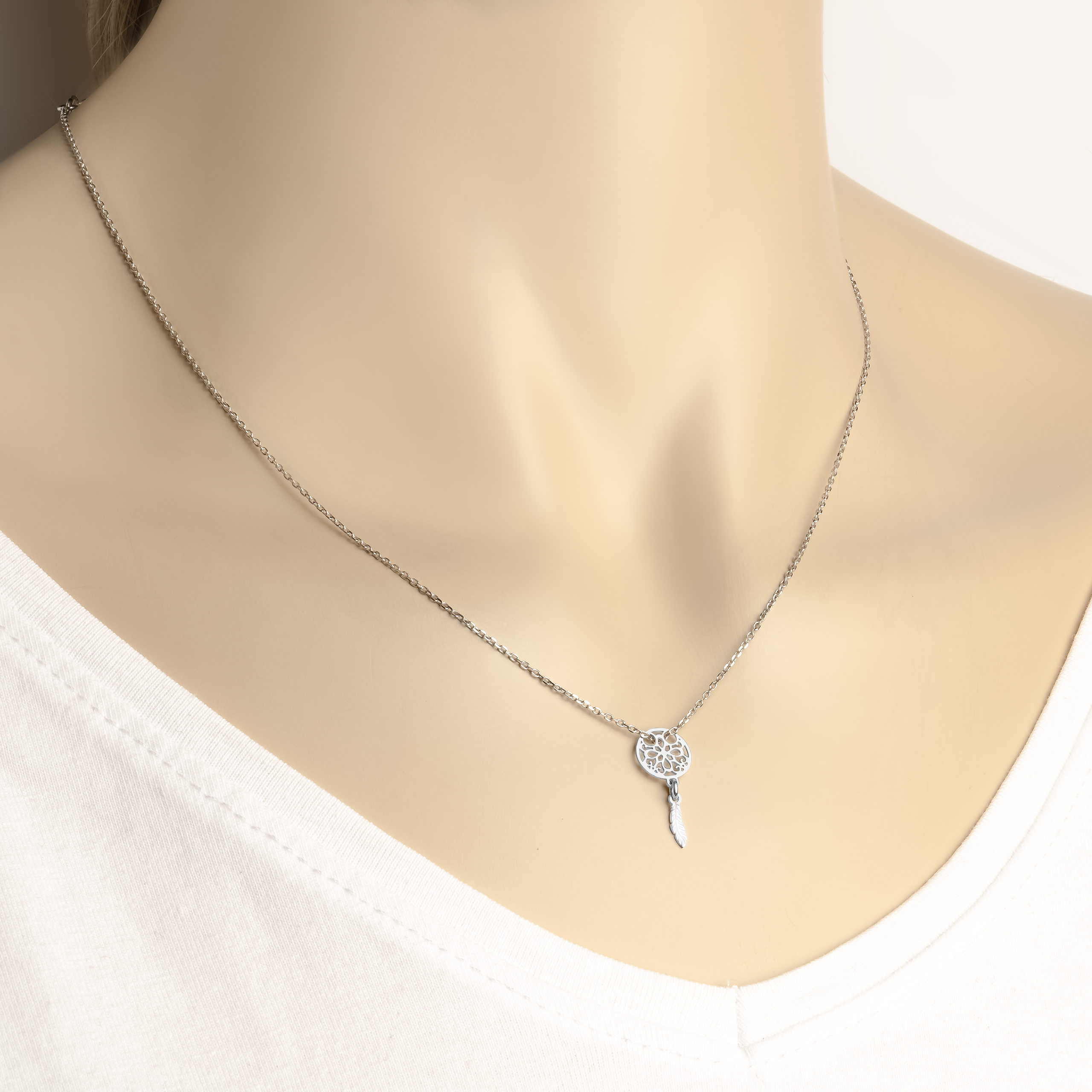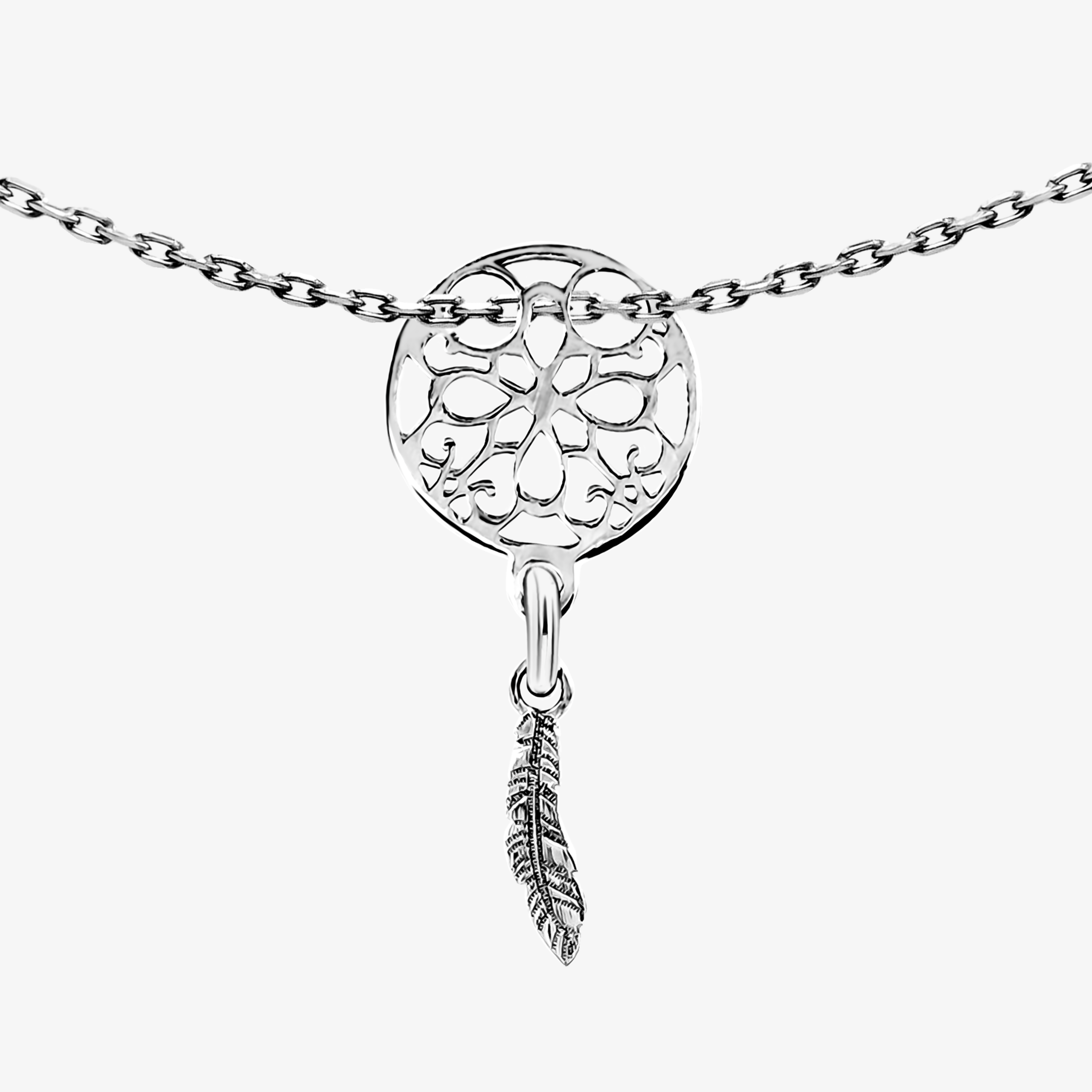Srebrny Naszyjnik z Łapaczem Snów o Ażurowym Wykończeniu.