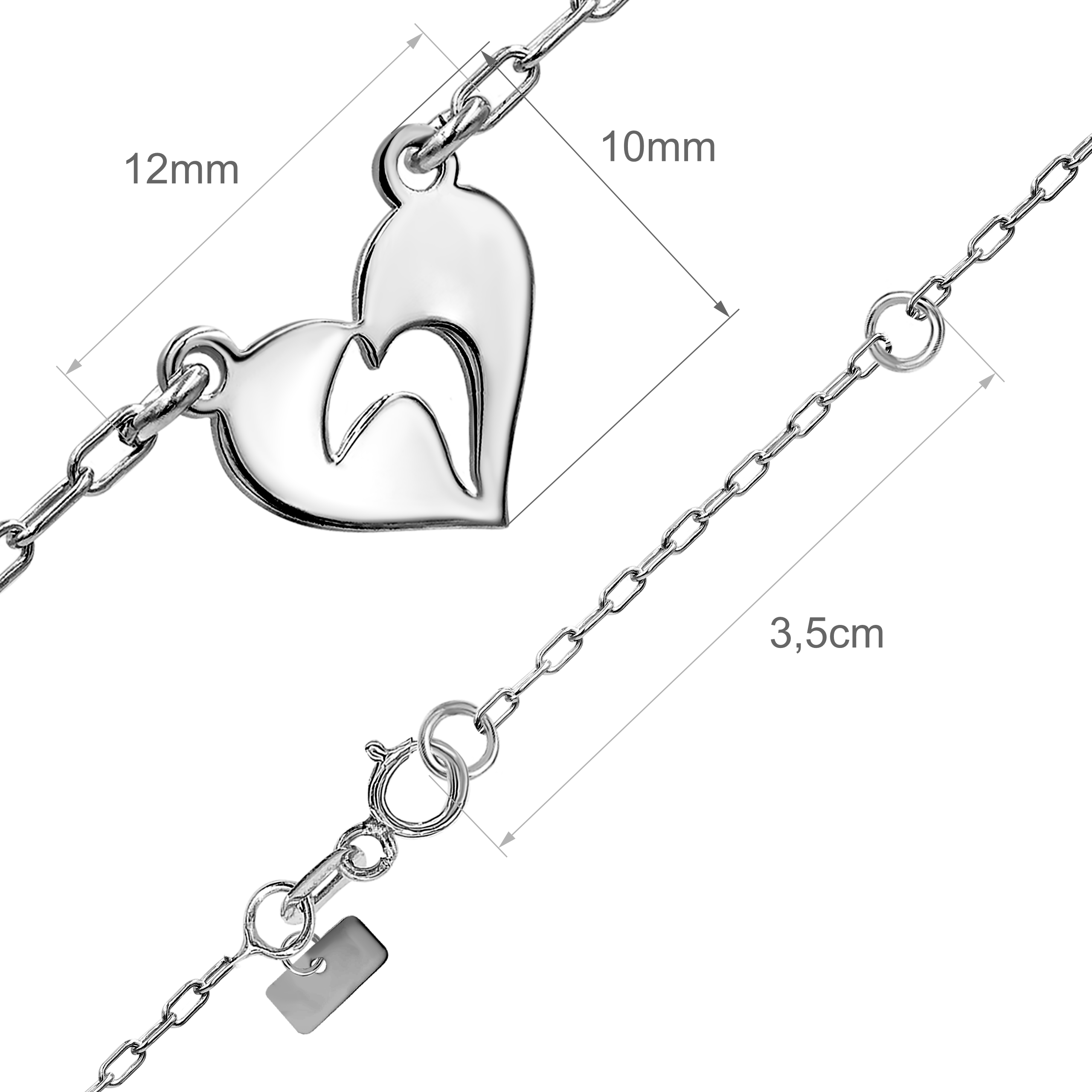 Bransoletka zawieszka serduszko - błyszczące białe cyrkonie