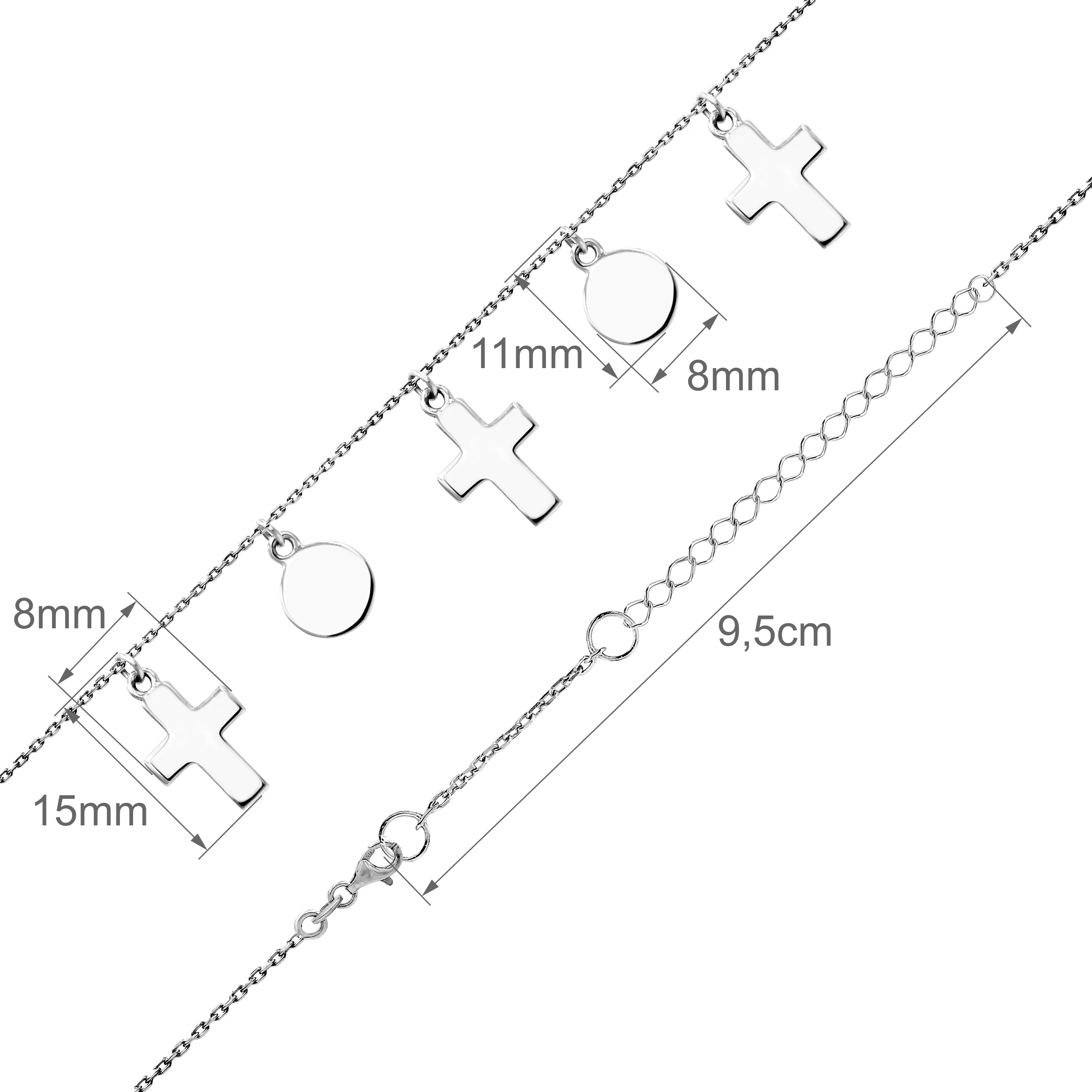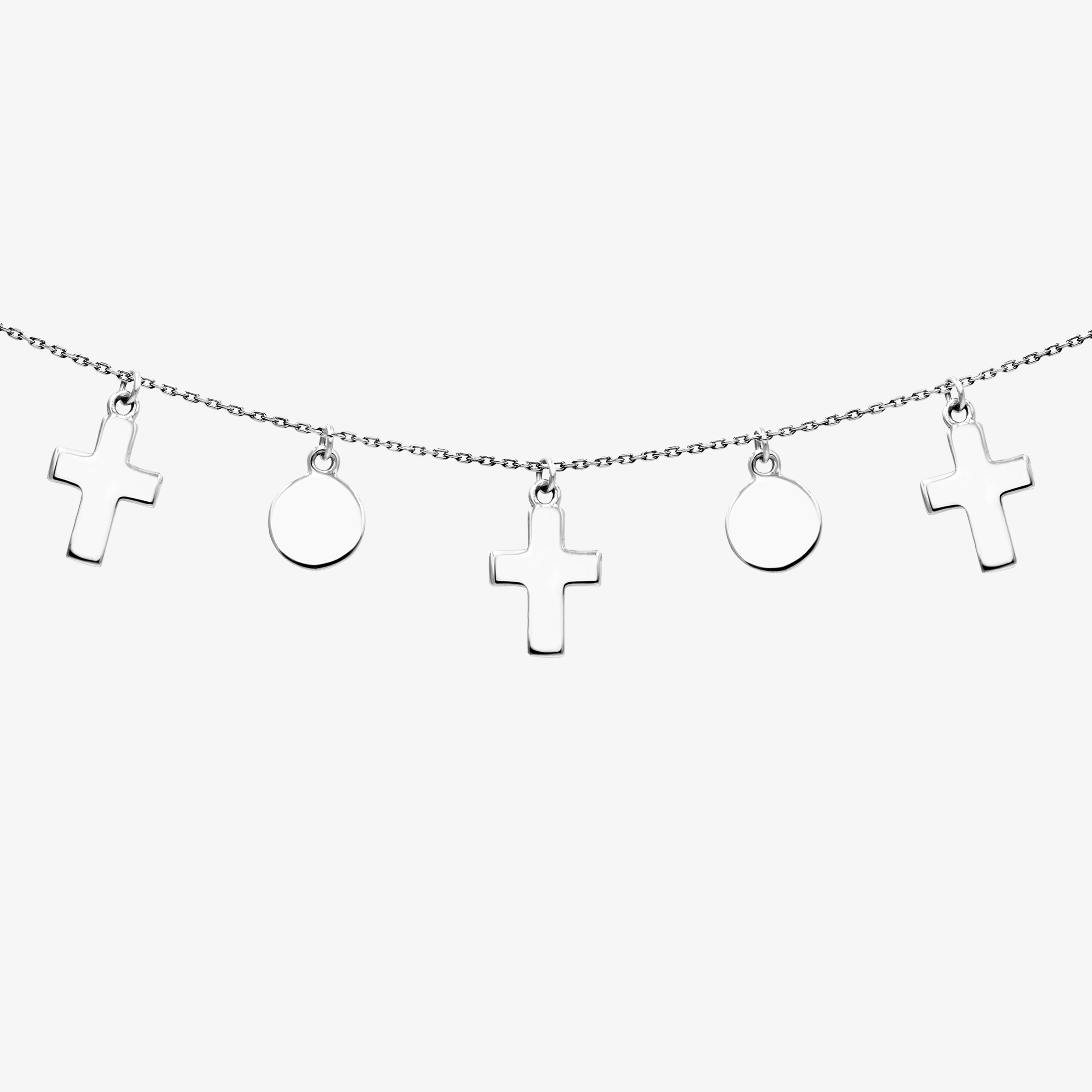 Srebrny Naszyjnik z Zawieszkami w Kształcie Kółeczek i Krzyżyków