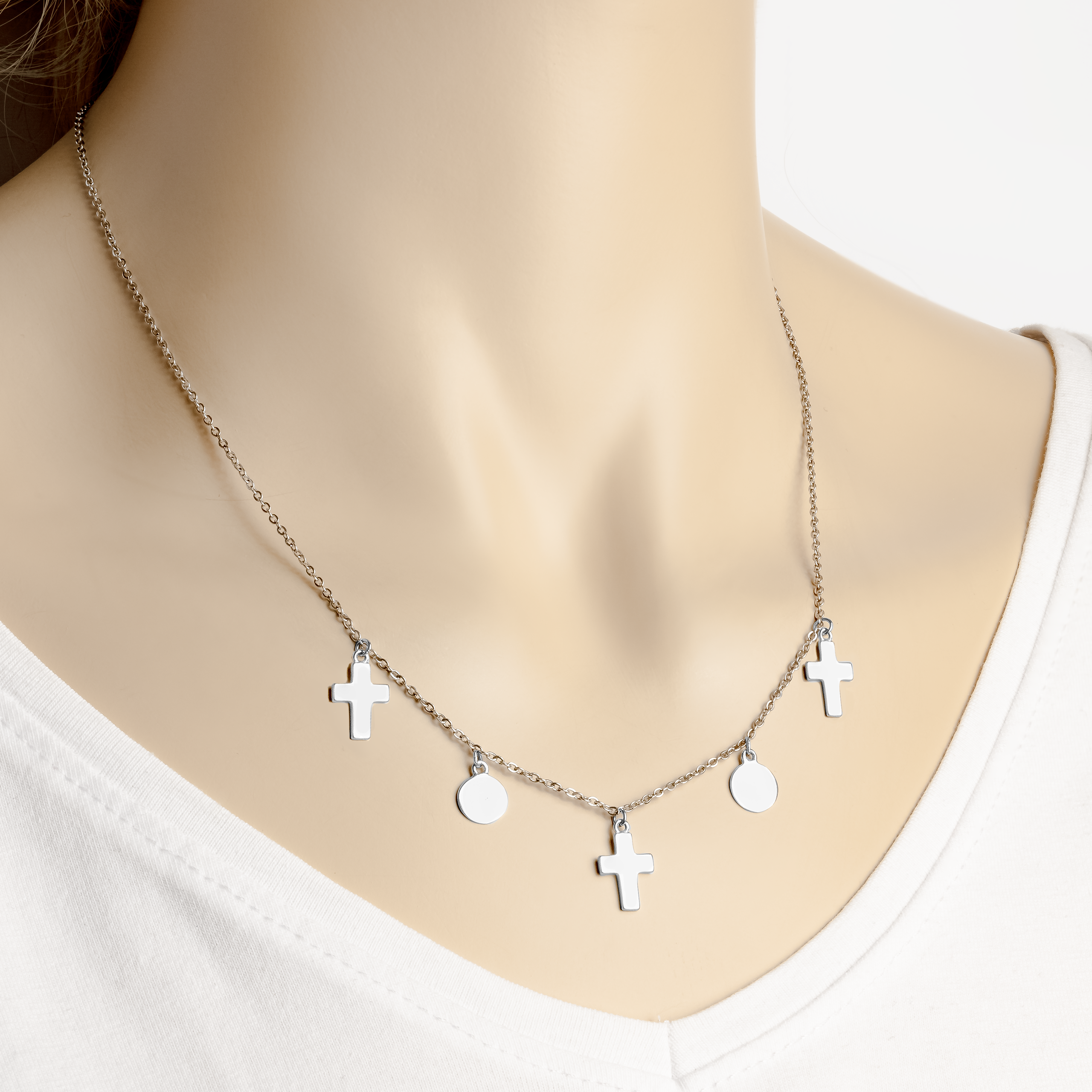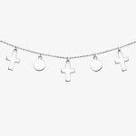 Srebrny Naszyjnik z Zawieszkami w Kształcie Krzyżyków i Kółeczek, jako dodatek do każdej stylizacji.