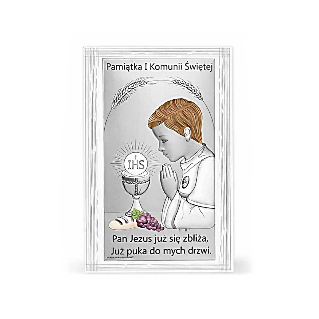 Srebrny obrazek komunijny dla chłopca – Pamiątka I Komunii Świętej