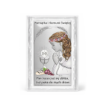 Srebrny obrazek komunijny dla dziewczynki – Pamiątka I Komunii Świętej