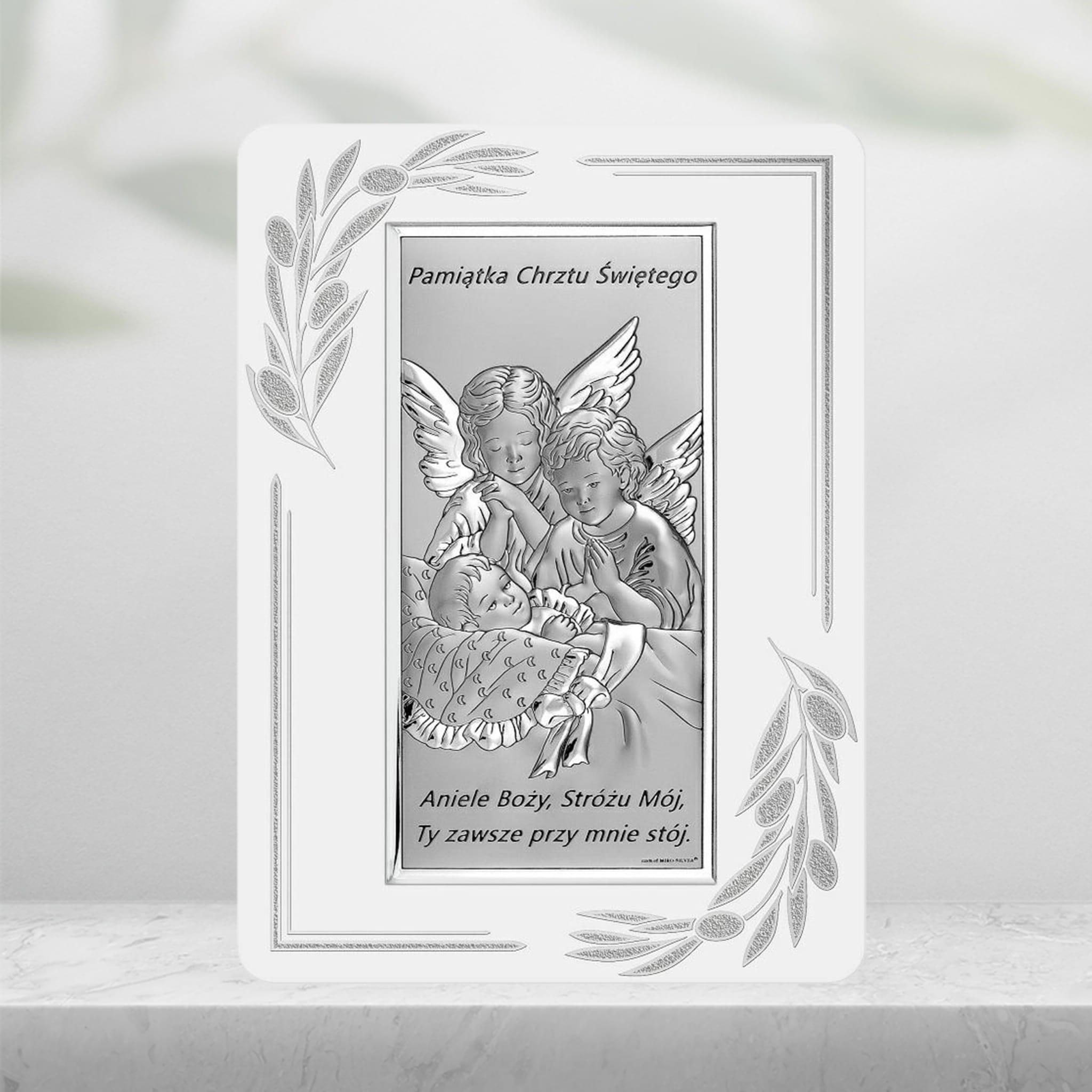 Ten srebrny obrazek na chrzest możesz wyeksponować tak, jak Ci wygodniej: