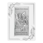 Srebrny obrazek na chrzest z modlitwą Anioła Stróża + dedykacja