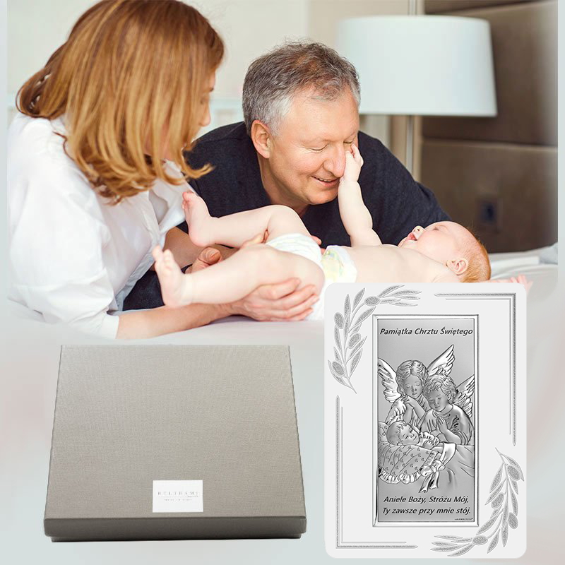 Srebrny obrazek na chrzest z aniołkami – pamiątka, która daje poczucie opieki