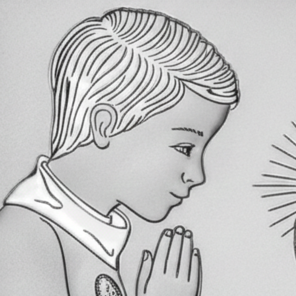 Srebrny obrazek z aniołkiem w sercu – pamiątka modlitwy dla chłopca