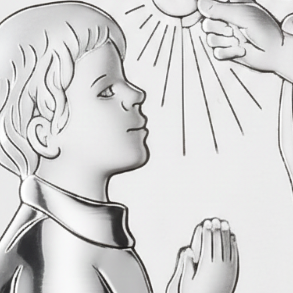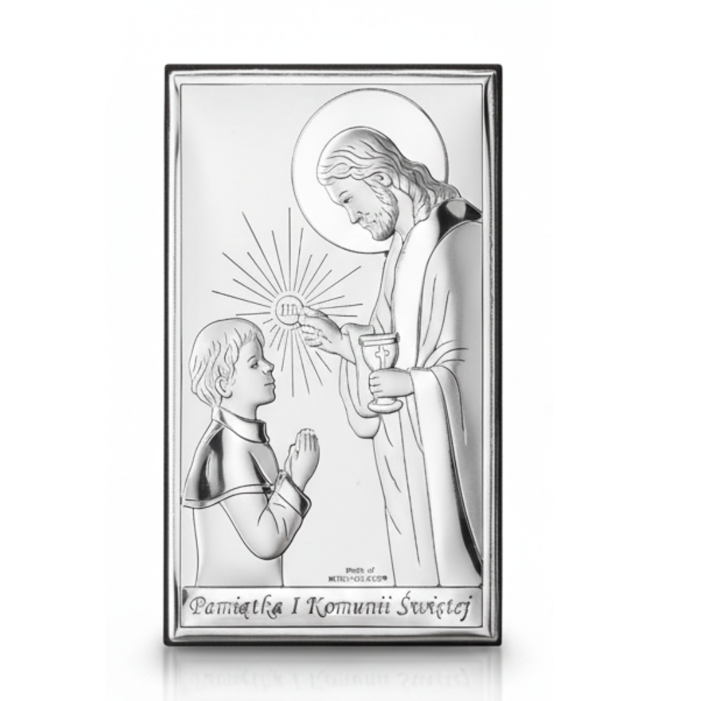 Srebrny obrazek na komunię – Jezus udzielający Komunii (chłopiec)
