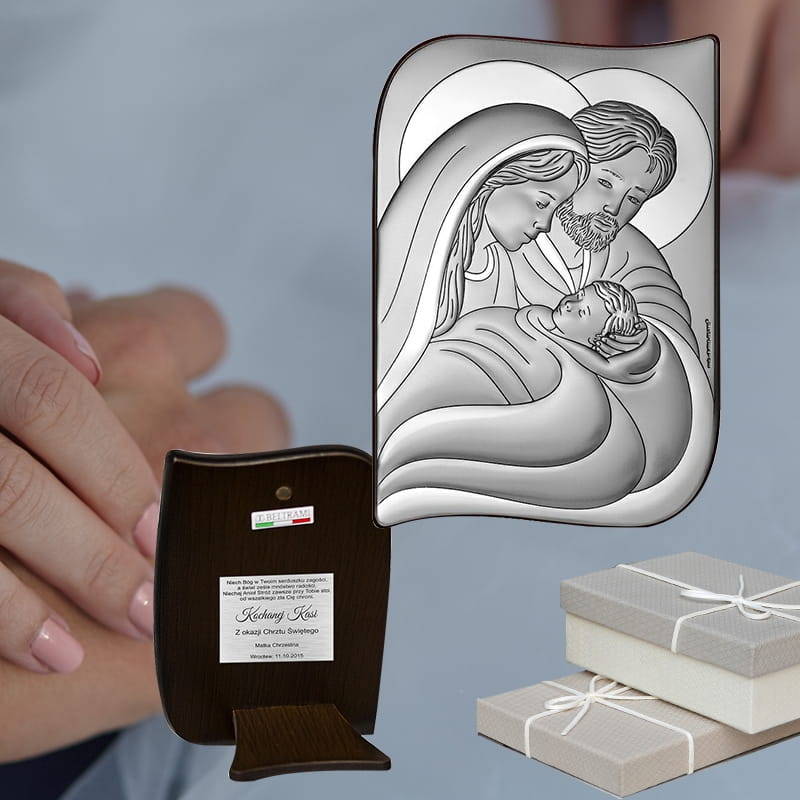 Srebrny obrazek Święta Rodzina w ramce – pamiątka na lata