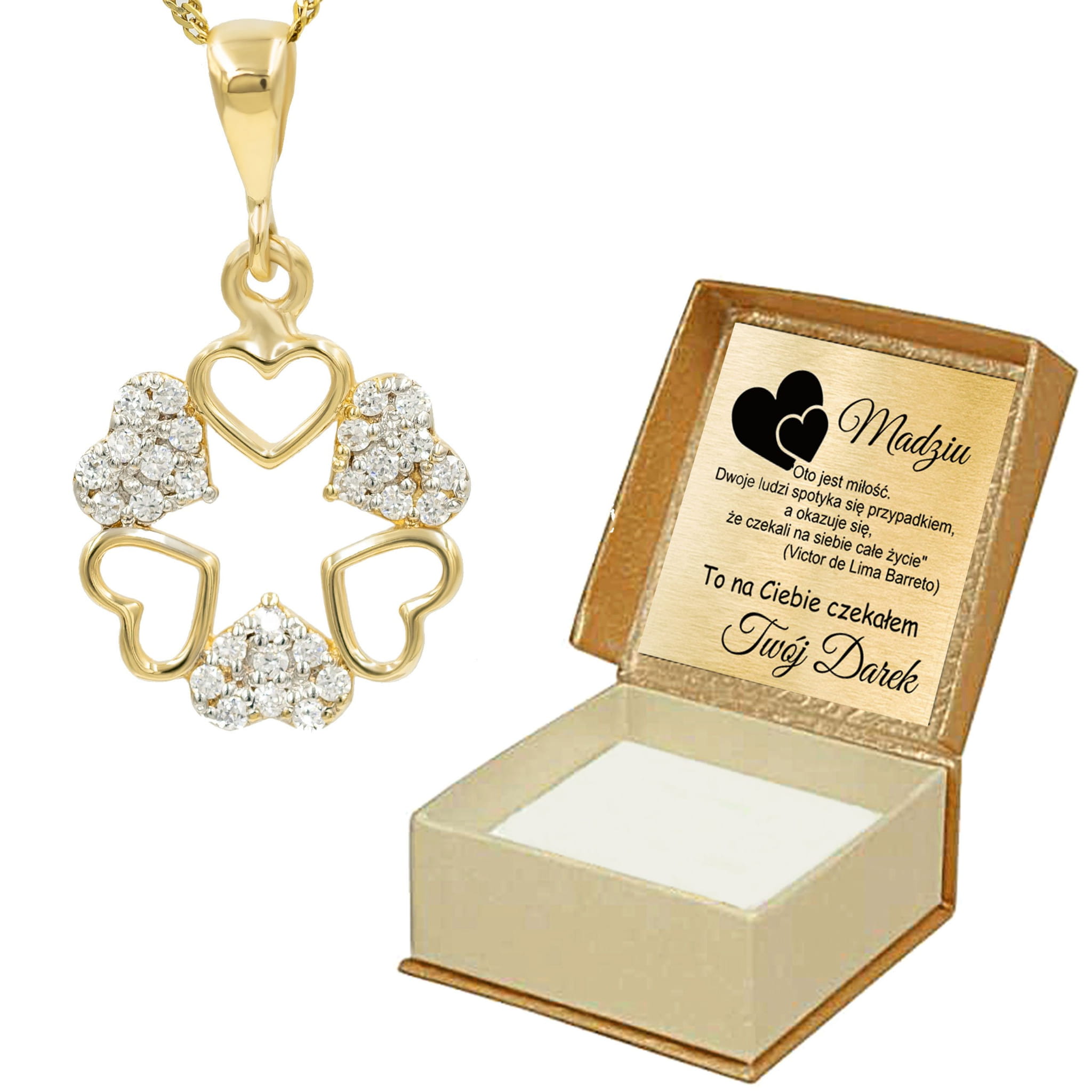 Złote kolczyki z motywem koniczynki i serca – elegancja i szczęście z możliwością personalizacji i ozdobnym pudełkiem