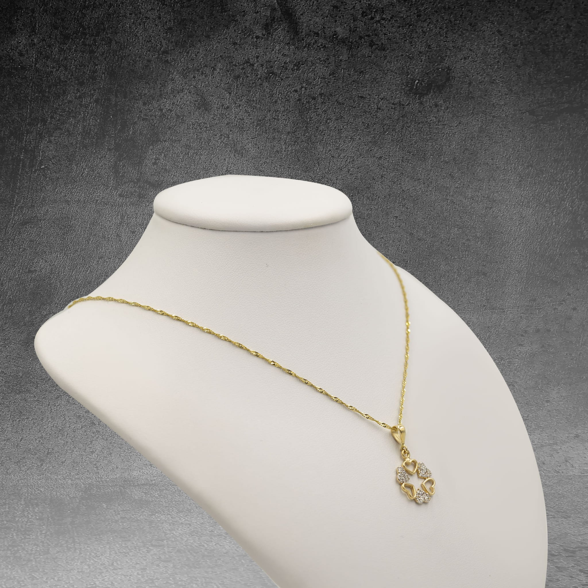 Złota zawieszka w kształcie złączonych serc z osadzonymi cyrkoniami. Cudowny prezent, który możemy wręczyć kobiecie z okazji imienin, urodzin czy rocznicy. Wręczony upominek na pewno spowoduje uśmiech na twarzy. Każdy wzór posiada metkę jubilerską. Opakowanie GRATIS.