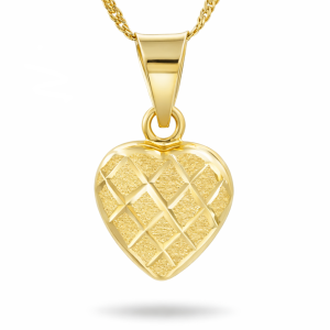 Złota zawieszka w kształcie serca z oryginalnym zdobieniem. Cudowny prezent, który możemy wręczyć kobiecie z okazji imienin, urodzin czy rocznicy. Wręczony upominek na pewno spowoduje uśmiech na twarzy. Każdy wzór posiada metkę jubilerską. Opakowanie GRATIS.