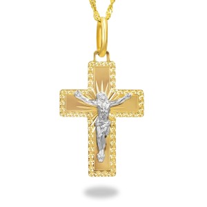 Złoty krzyżyk z Panem Jezusem dwukolorowy 585